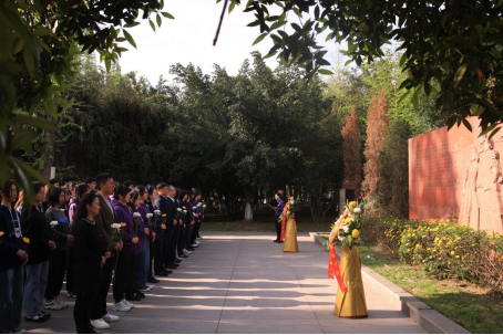 在江安校区,副校长梁斌,学校相关单位的负责人以及江姐班、“青马工程”弘毅班、各学院师生代表齐聚英烈碑广场,以青年之名致敬英烈,寄托对革命先烈的无限哀思。
