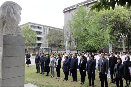 在华西校区毛英才烈士塑像广场,副校长叶玲,关心下一代工作委员会相关老领导、学校相关单位负责人以及医学各学院和附属医院师生代表共同开展祭奠英烈活动。