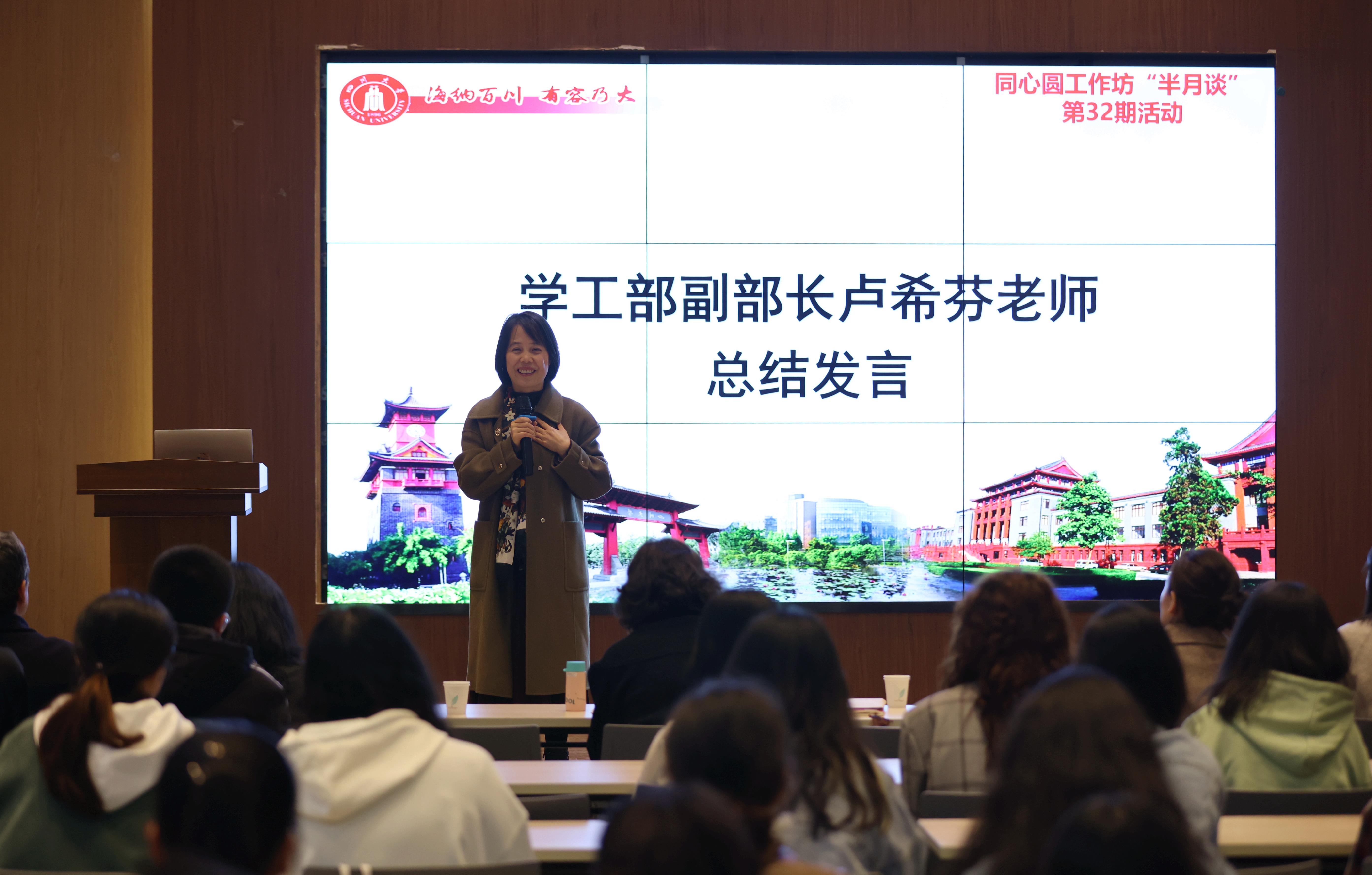 春风浩荡满目新,扬帆起航正当时。为深入贯彻落实党的二十大精神,帮助民族学生更好地适应大学学习生活,规划好大学生涯,学工部于3月26日在江安校区22舍报告厅举办了2022级学生见面会暨“同心圆工作坊”第32期活动。党委学生工作部副部长卢希芬,党委组织部张婧老师,教导员代表,民族学生事务办、学生资助中心教师,新疆派驻教师及新疆籍、西藏籍民族学生参加了本次活动。