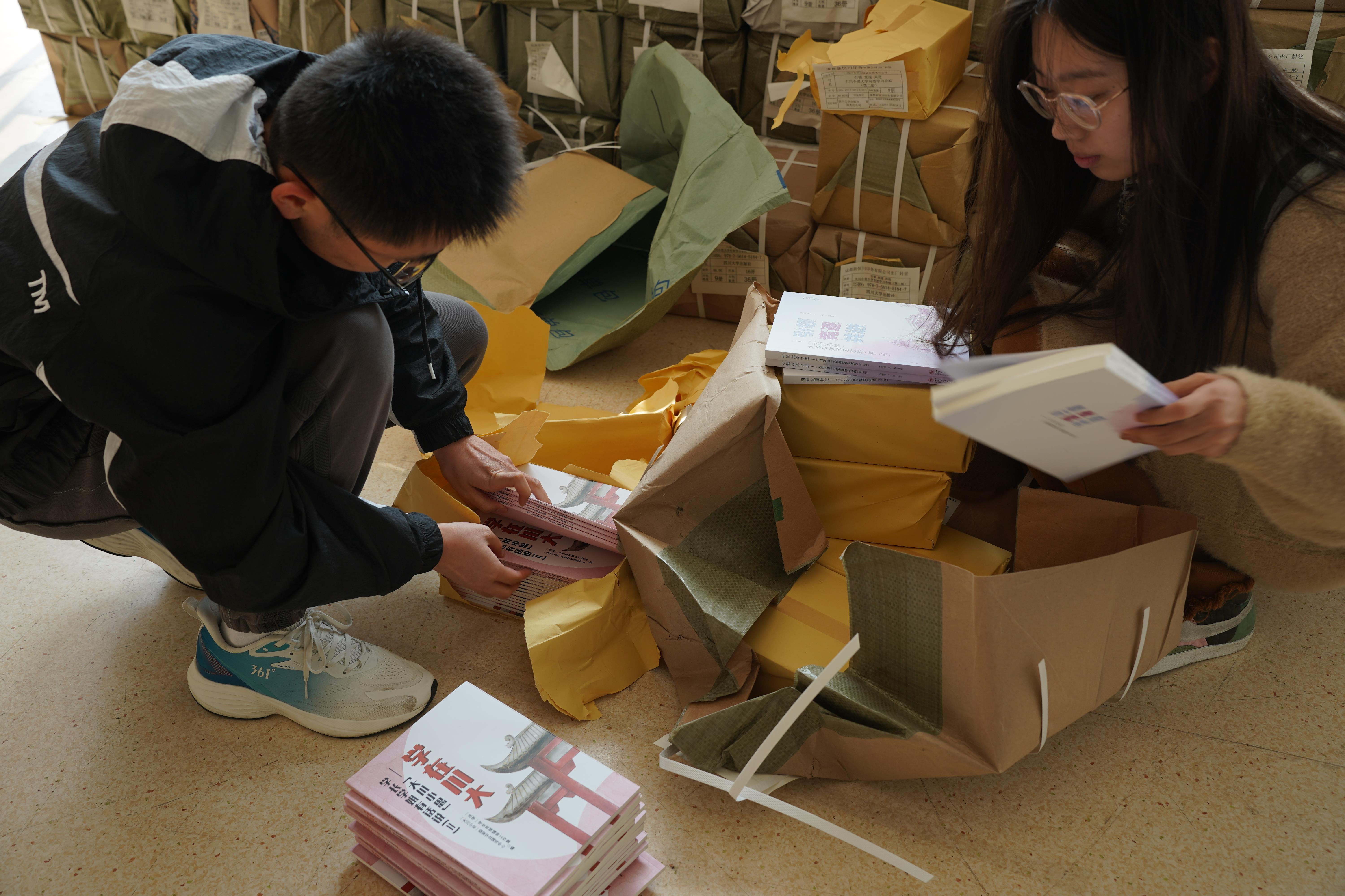 3月3日,学工部思学工作室组织“大川小思” 在学业发展辅导中心面向36个学院发放了由朋辈学业导师们编写出版的《引领·竞逐·共进——“大川小思”大学有效学习攻略(第2版)》以及《学在川大-“大川小思”学长学姐有话说(II)》两书,累计发放图书近2万册,覆盖2022级全体本科生。