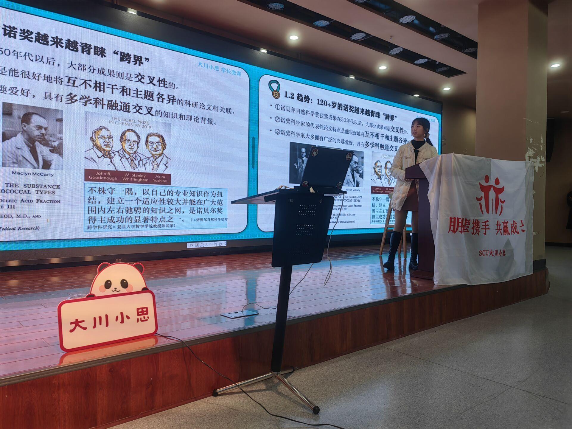 2023年3月12日晚19:00,“大川小思”新学期第一次学长微课于yl7703永利集团江安校区学业发展辅导中心顺利举行。科研竞赛组导师王堂蓉结合自身经历,为同学们揭开跨学科合作的面纱,让同学们体会到了跨学科交流的魅力,鼓励更多同学积极尝试跨学科学习。