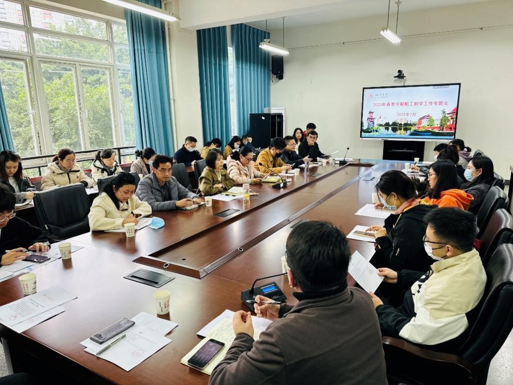 为深入学习贯彻党的二十大精神,积极谋划新学期勤工助学工作的发展,切实发挥勤工助学的资助育人功能,2月28日下午,学生工作部在文华活动中心201会议室召开春季学期勤工助学工作专题会,学生工作部副部长卢希芬、资助中心全体老师、校内各设岗单位勤工助学指导老师参加了此次会议。