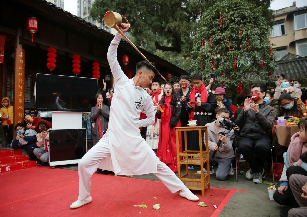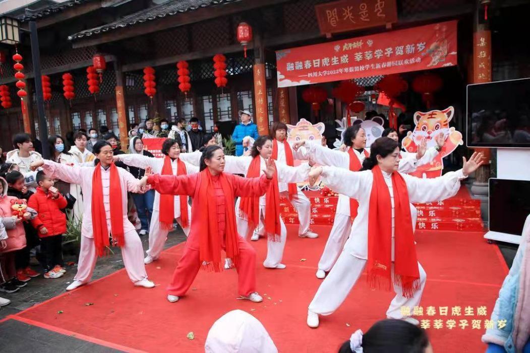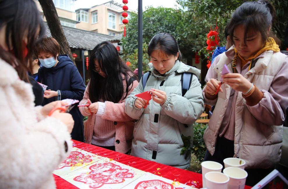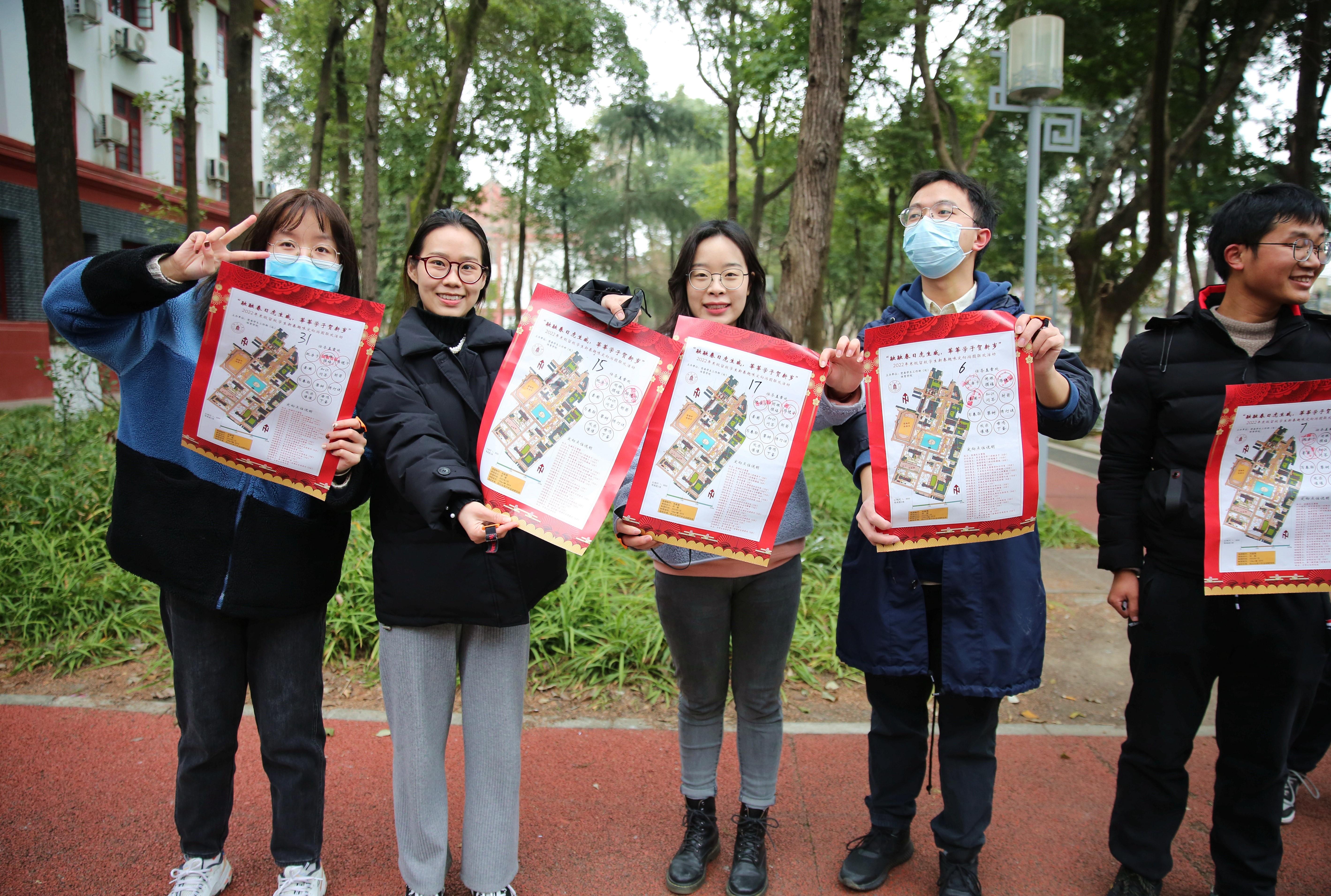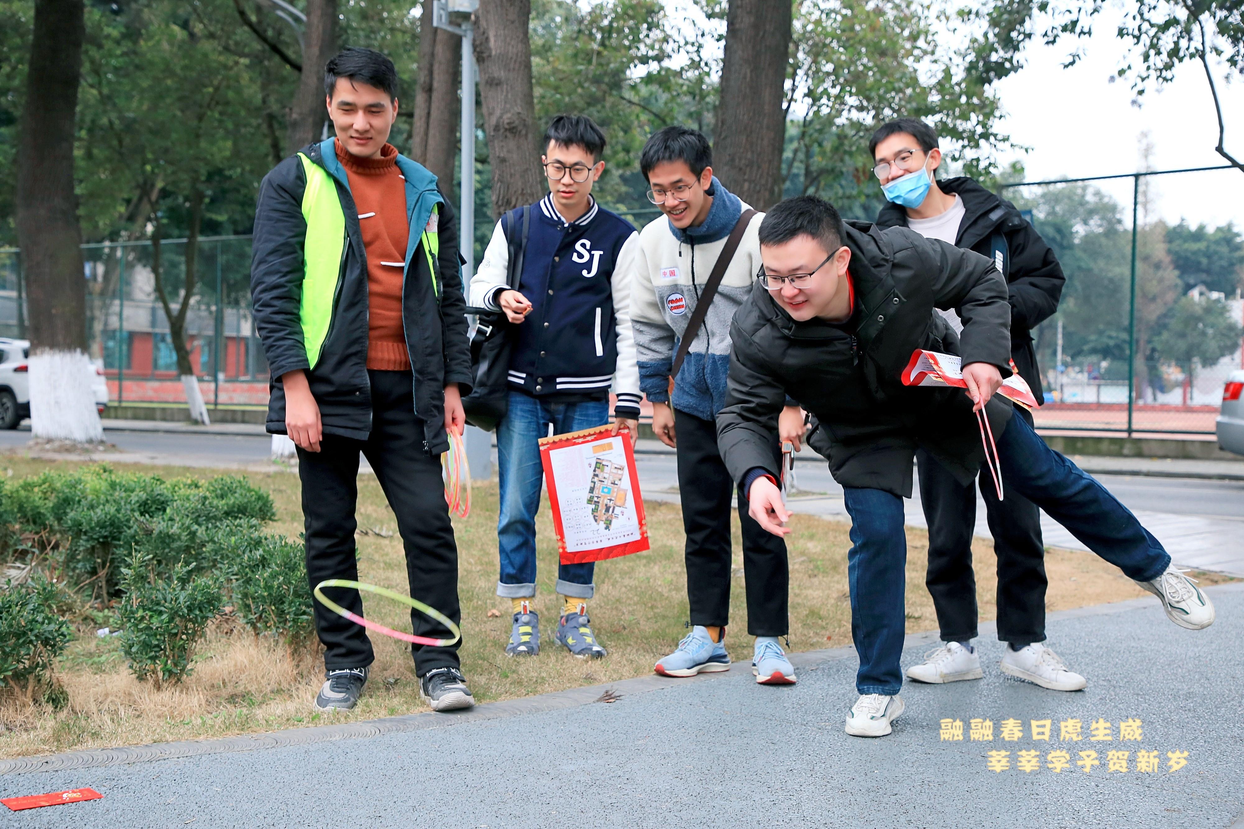 yl7703永利集团留校学生新春游园联欢活动已连续举办八年。与往年不同的是,在联欢活动正式开始前,开展了以党史学习教育、红色基因传承、校史文化宣传为主题的户外趣味定向体育运动。同学们以川大第一任校长张澜先生雕像处为起点,领取活动地图,前往校史馆、吴玉章先生雕像处、柯召院士塑像前、江姐纪念馆周边等点位完成跳房子、射箭、攀树、滑翔伞、踢毽子、找福袋等打卡任务。穿插其中的党史、校史知识竞答让同学们重温那段红色记忆,猜灯谜、写春联、剪窗花等儿时春节必有的传统也让现场充满欢声笑语。