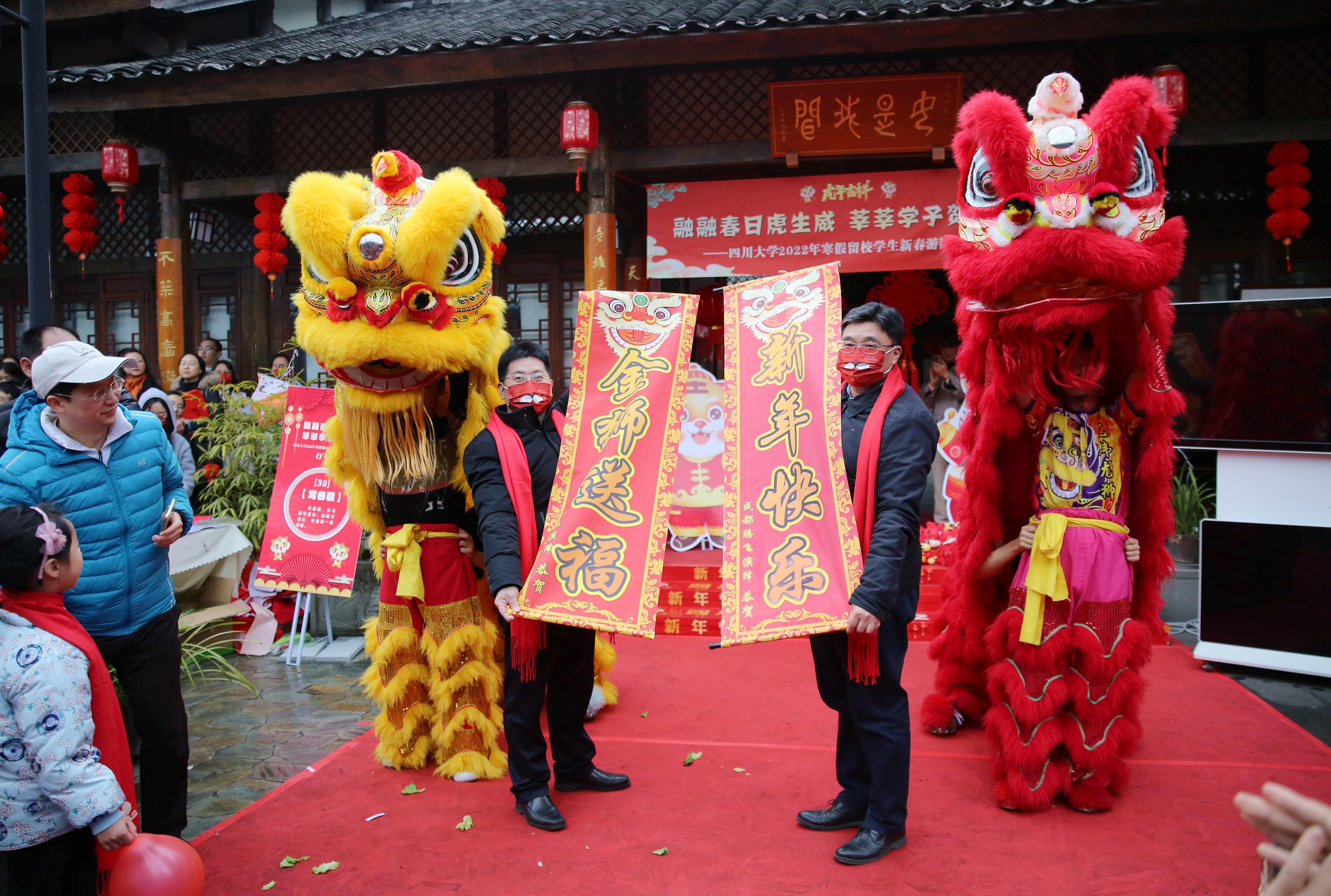 伴着精彩的表演,活动中还设置了抽奖、集体游戏等环节。零食大礼包、运动相机、小米手环、电动牙刷等丰富奖品被同学们领回去,开启龙腾虎跃的农历2022年。中奖的同学们也纷纷上台送出春节祝福:“愿山河无恙,国泰民安。”“希望川大越办越好!”“祝愿大家新一年里身体健康、前程锦绣!”……