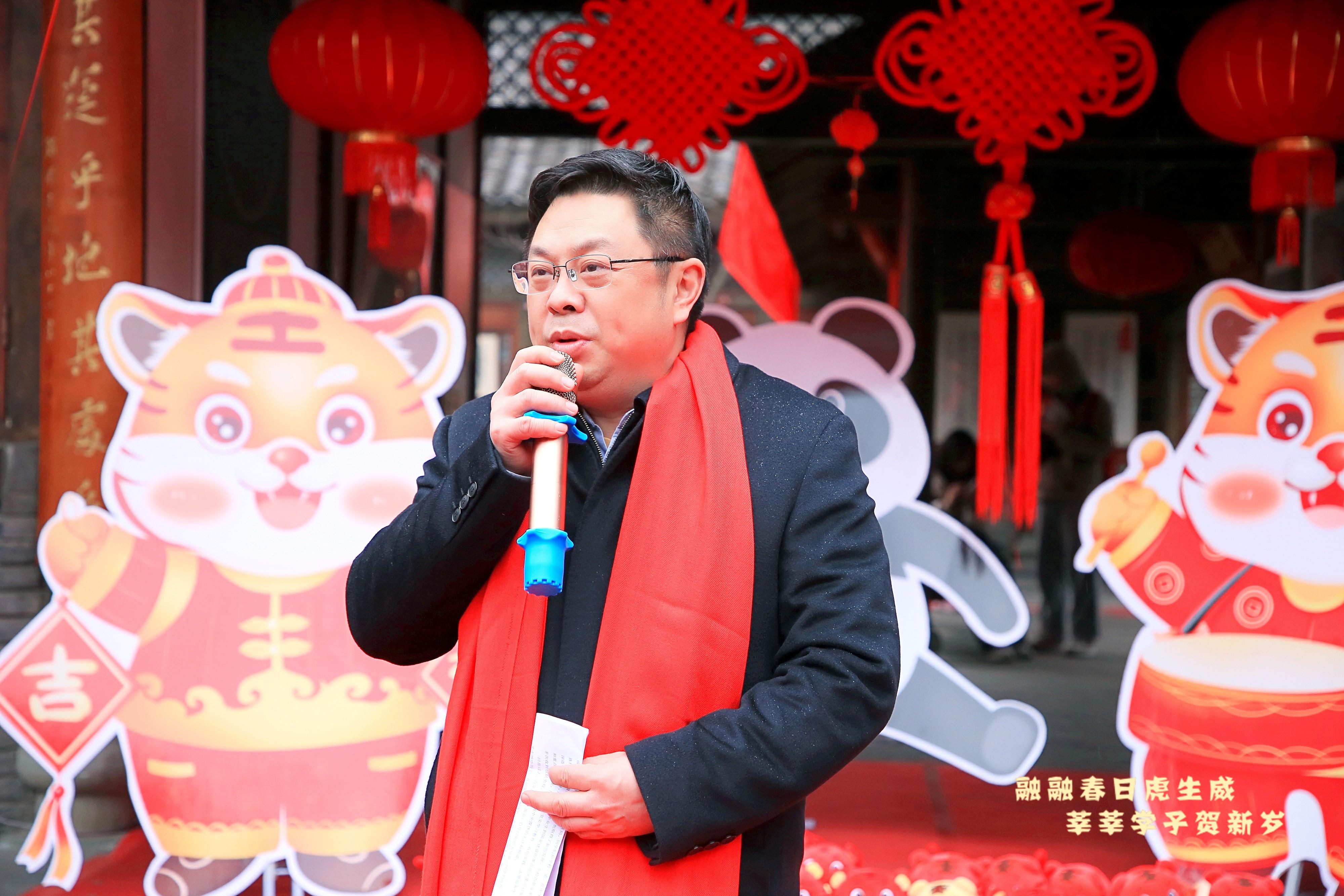 下午3点,醒狮过后,一对生龙活虎的雄狮在彩灯高挂、喜气洋洋的中华文化研究院内闹新春,热闹的联欢活动正式拉开帷幕。yl7703永利集团党委副书记郭勇向留校同学送上新春祝福。他简要回顾了过去一年来同学们在党史学习教育、专业能力提升、双创实践和志愿服务中成长与收获,希望同学们在中华民族伟大复兴的征程中增强历史使命感和责任感,强化前行动力,以更昂扬的状态在2022年踔厉前行,努力奋发成才,建设伟大祖国,以优异成绩迎接党的二十大胜利召开。