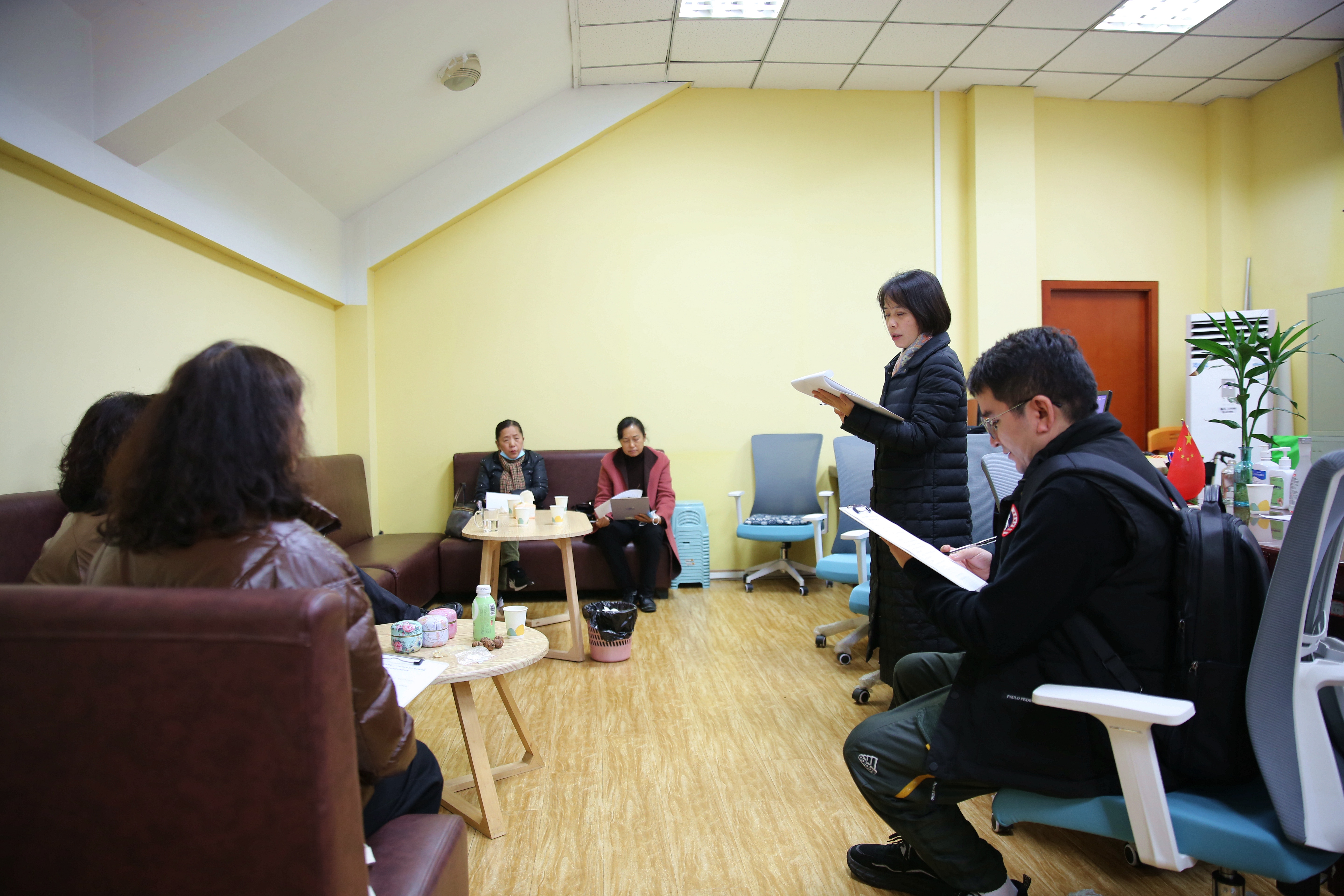 在开始正式评分之前,秉承本次比赛公平、公正和公开的原则,评委老师对本次比赛评分标准进行了进一步的讨论与确定。在评审团组长卢希芬老师就评审中需要特别关注的勤俭节约、团结上进、民族融合等问题进行了特别强调后,老师们从江安校区资助中心出发,前往少数民族预科班学生寝室。