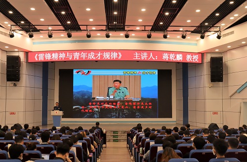 蒋乾麟教授围绕习近平总书记关于“雷锋是时代的楷模,雷锋精神是永恒的”的重要论述,详细介绍了“雷锋精神”的丰富内涵:爱岗敬业的“螺丝钉”精神、肯学肯“钻”的“钉子”精神和服务人民的“傻子”精神。蒋教授着重从雷锋同志的生平事迹、日记言论的视角出发,讲述了“雷锋精神”的感召与青年成才规律中的“顺势成才”“压力成才”“忘我成才”的关联性;指出了“成才目标要与社会发展趋势相一致”“成才设计要与社会需要及实际可能相统一”“成才过程要与角色转换相适应”的重要性;提出了如何在“自找苦吃”和自我修炼的具体实践中、在以英雄豪杰为榜样的自我激励中完成“三个转变”,成为自觉、刻苦和全面的求学者的途径;强调了牢固树立服务人民、助人为乐并始终坚持人民利益至上的“全心全意为人民服务”人生观的必要性,勉励大家保持正确方向,激发个人潜能,彰显人生价值。