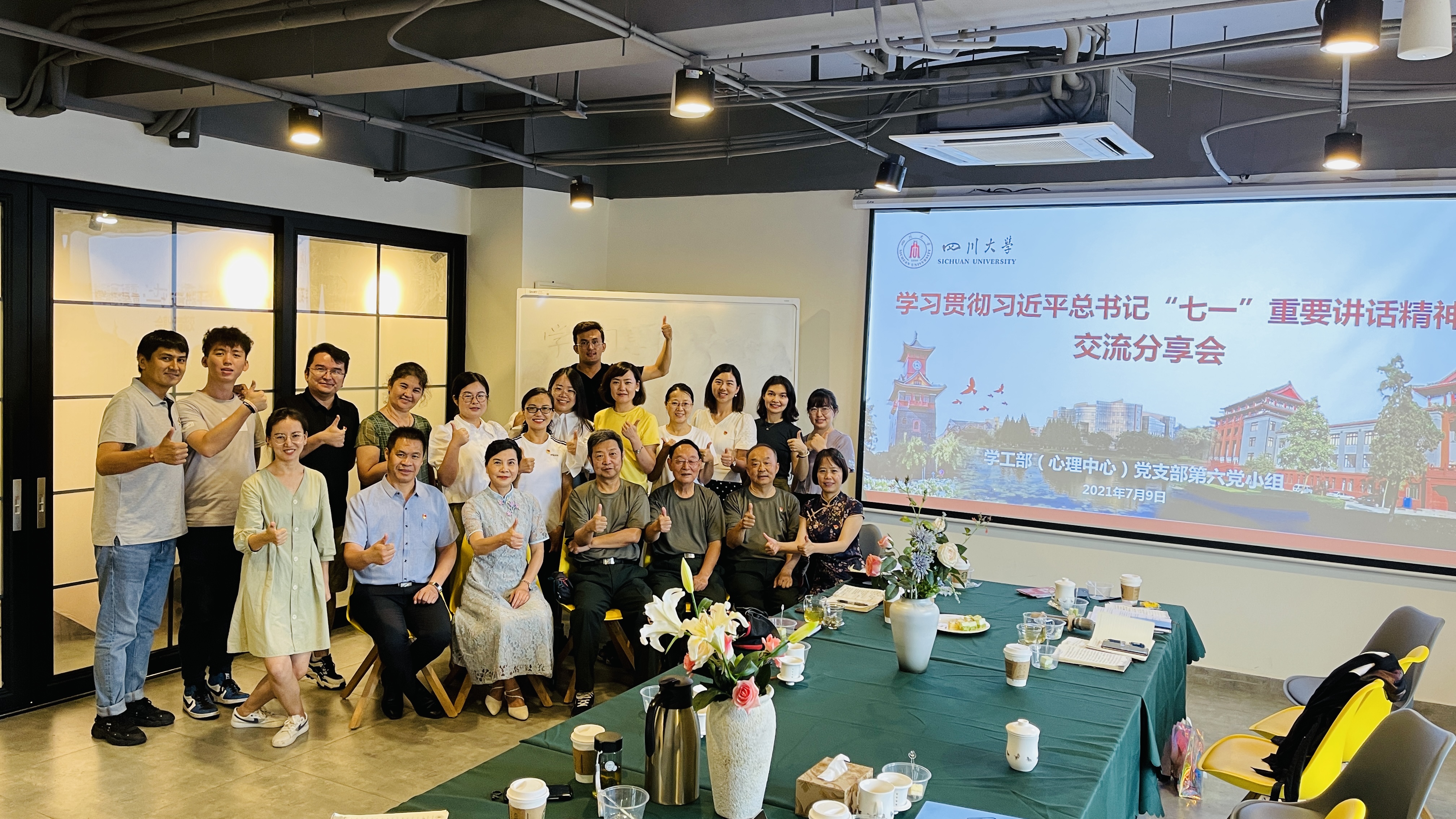 为深入学习贯彻习近平总书记在中国共产党成立一百周年庆祝会上的重要讲话精神,2021年7月9日,学工部党支部第六党小组开展了学习贯彻习近平总书记“七一”重要讲话精神交流分享会。第六党小组全体党员同志、退休老党员文家成、王军、陈荣玉、曾桂秀参加了会议。