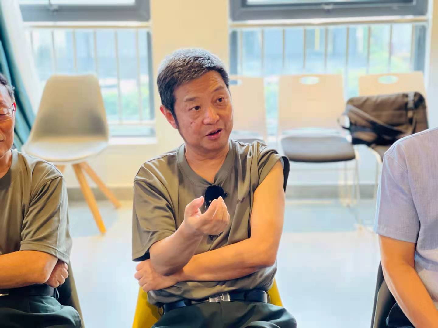 历史文化学院教导员文家成在分享入党50年来的体会中表示,党为自己指明了人生的方向,部队为自己注入军人的血性,川大给予自己文化的力量。网络空间安全学院教导员王军结合自身经历谈到,生长在红旗下的自己,因为对党对军人的向往毅然投笔从戎,在战事面前义无反顾投身临战训练。物理学院教导员陈荣玉分享中讲到:“在那个艰难困苦的年代,在山洪面前,身边的党员成为自己的榜样,入党成为自己的追求,3000多名营团战士中,自己第一个入党……”。曾经的资助人、退休老党员曾桂秀说到:“每个人尽力做好自己的本职工作就是助力我们伟大的民族复兴梦”。