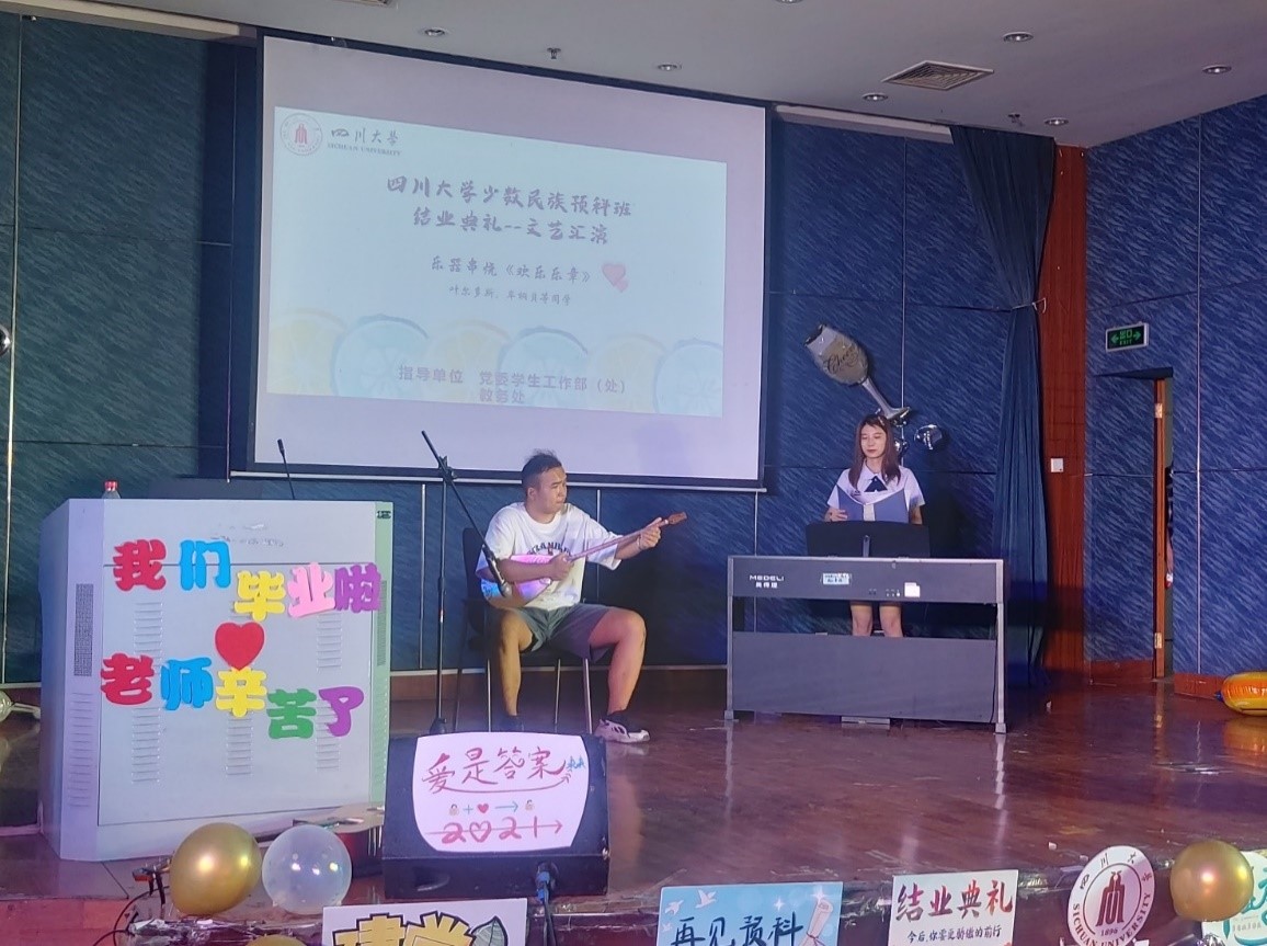 6月21日上午,2020级少数民族预科班结业典礼在江安校区二基楼报告厅隆重举行,学校党委学生工作部和教务处相关工作负责人、教导员、任课教师、新疆派驻老师和124名预科班学生参加了结业典礼。
