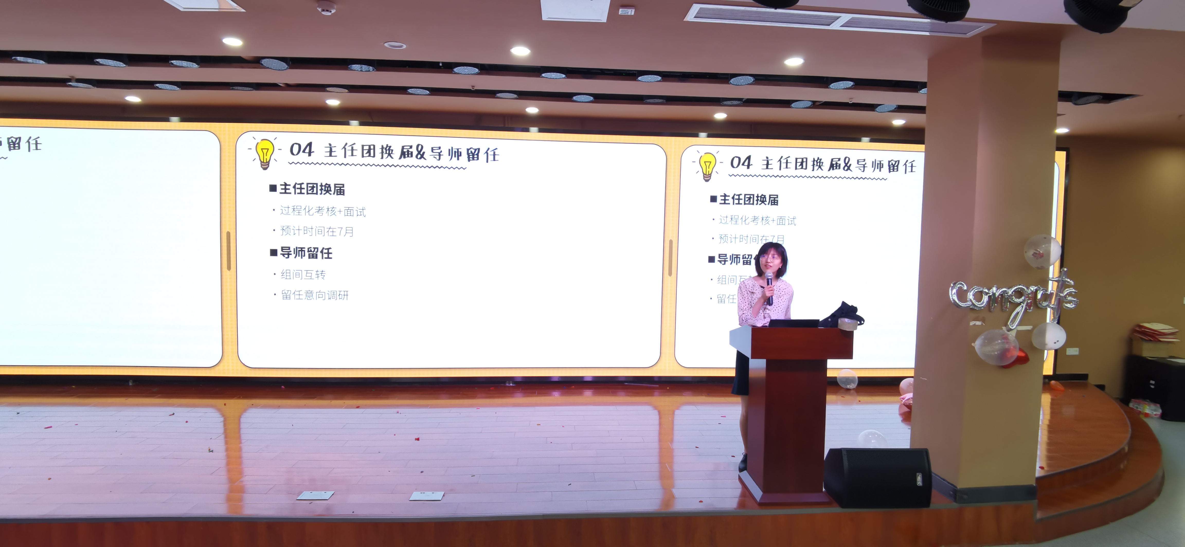 指导老师朱晓萍老师随后讲话。她回顾了“大川小思”短短一年多来的成长历程,肯定了“大川小思”开创性的贡献及每一位成员的贡献与努力,也指出团队目前存在规范化、专业化不足及宣传影响力欠缺等问题。下一步,她希望全体成员更加明确肩负的责任,不仅在专业学习的指导上,更要在思想品德的素养、在朋辈学业指导工作的一言一行中提高对自己的要求,坚持正能量的思想引领,坚持认真热情的工作态度,“在功利化时代下认真努力做好引领校园优良学风校风的一股清流,在学业上帮助同学的同时,承担好提前担当的’’‘导学育人’角色”,在“助人”中不断提升和升华,收获“自助 ”。