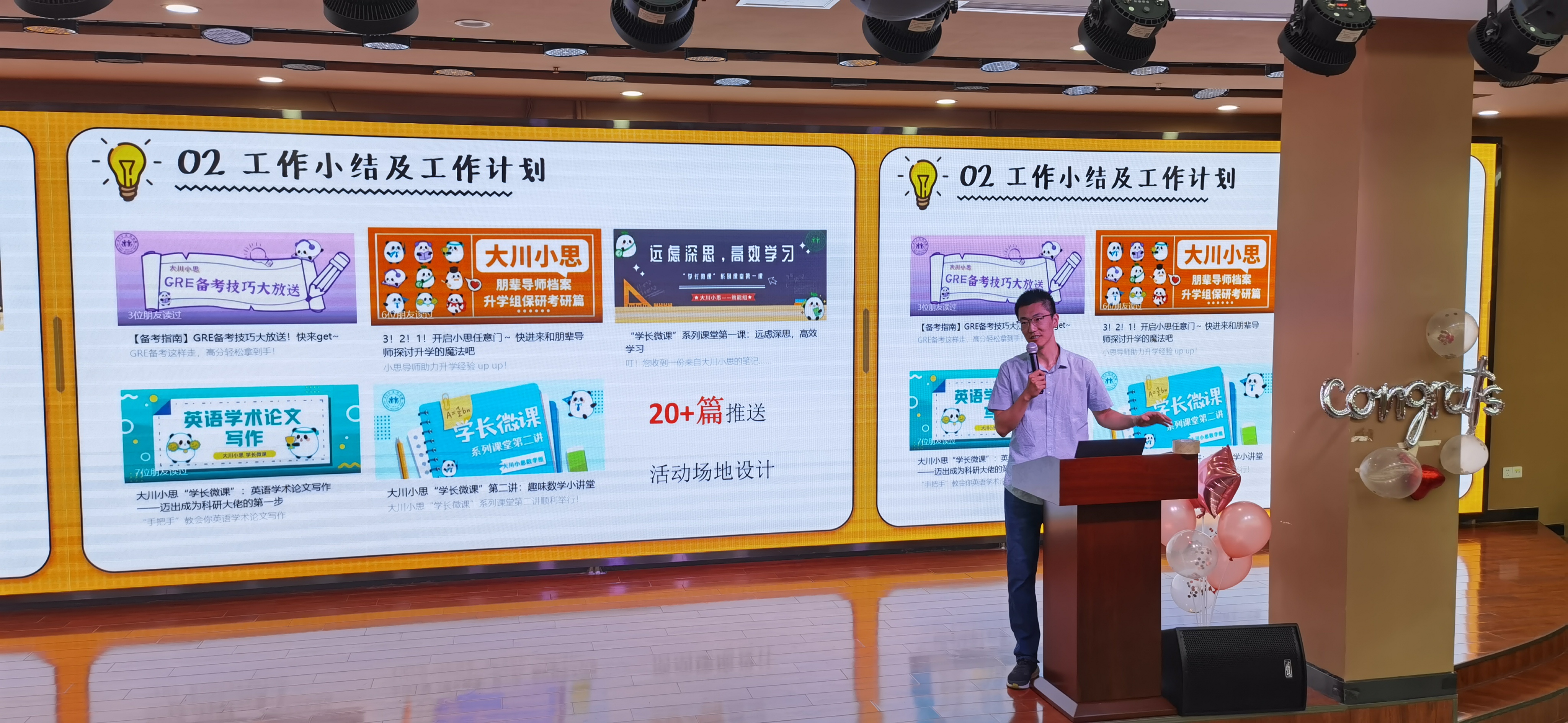 接着,中心副主任徐嘉同学对本学期“大川小思”的工作进行了总结。在继续推进一对一咨询、学业分享推文、学习小册子修订等工作外,本学期还创新开展了留学指导、“学长微课”团队辅导(每周一次)、小导师学习感悟征集等,不断拓展朋辈学业指导工作内容。中心主任赵一凡同学对下一步工作,如即将实施的“大川小思”奖励计划、形教课宣讲计划、QQ群投稿箱计划、主任团换届等,做了简要介绍和相应安排。