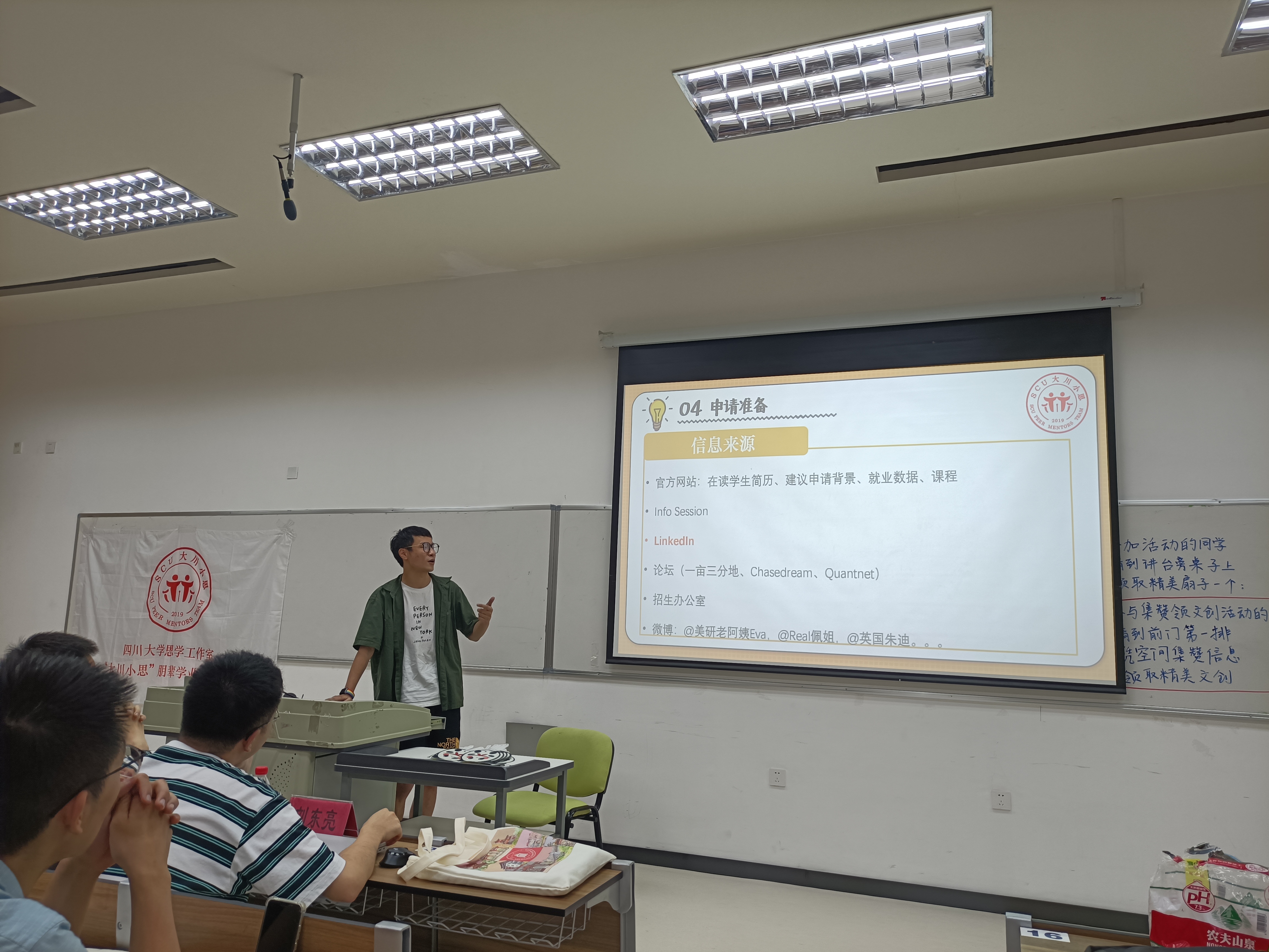 5月22日19:00,“大川小思”出国留学朋辈团体辅导活动在江安校区综合楼C408顺利举行。此次学业团体辅导由本学期新招募选聘的“大川小思”升学组出国留学小导师承担,也是学工部“思学”工作室首次开展的出国留学朋辈团体辅导活动。
