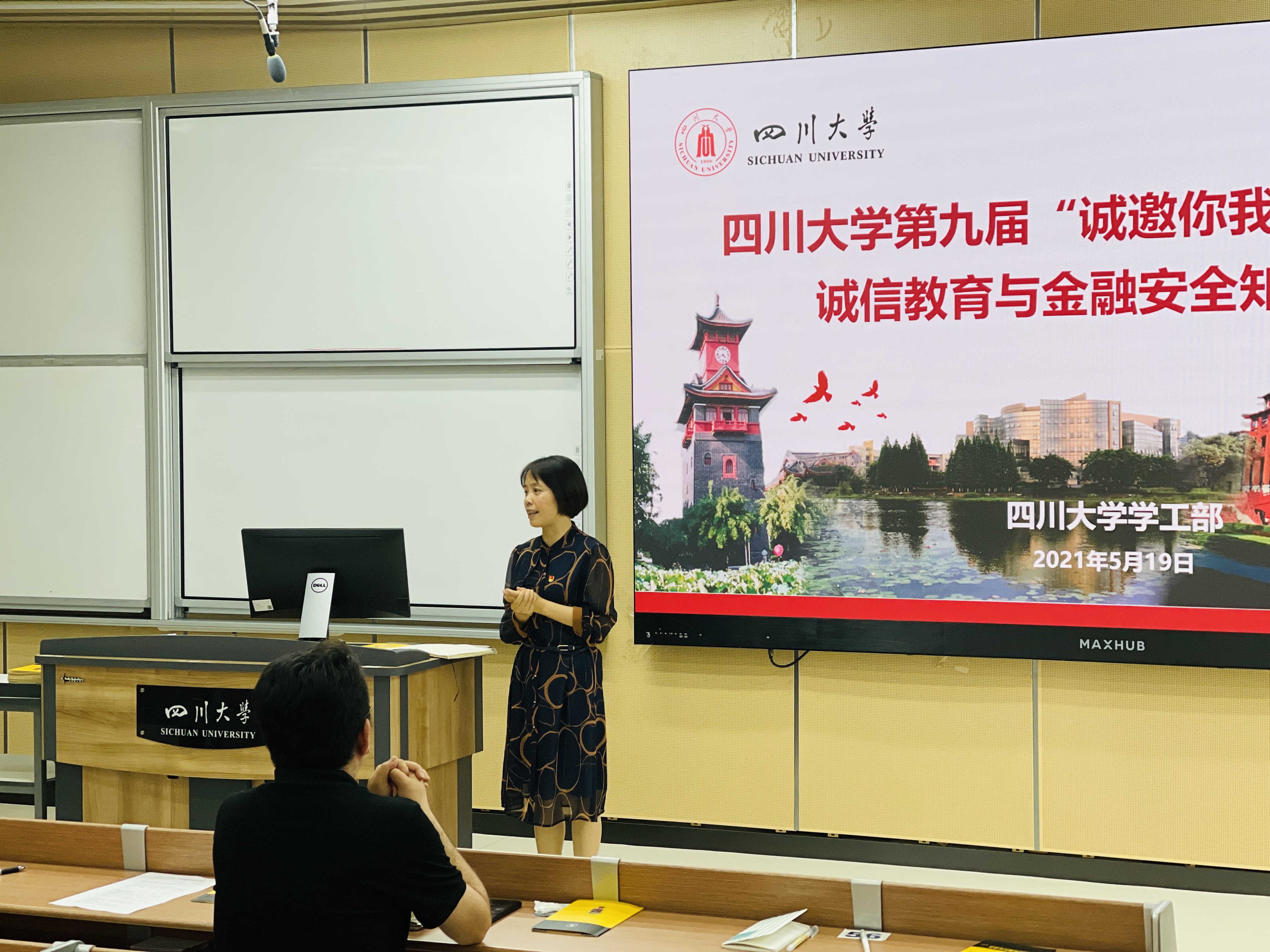 在资助诚信和金融安全知识竞答后,来自交通银行成都城西支行的王红明行长结合详实的案例和丰富的数据对学生开展了生动的征信知识普及、不良校园贷和电信网络诈骗防范教育等。逾期怎么记?自查的信用报告怎么用?良好的信用记录怎么维护?按时还款有多重要?……王行长通过个人征信“二三事”整理出17个征信、征信报告问题,结合工作中的真实案例让同学们对征信有了初步的认识。讲座中,王行长还向同学们展示了他个人的信用报告。通过国家助学贷款完成学业的他告诉同学们,因为自己按时还款、维护好了个人征信这张经济身份证,自己才能拥有事业发展平台,顺利申请车贷、房贷。王行长还提醒同学们:勿信400开头假客服来电,警惕“注销校园贷的电信诈骗”,防范不良校园贷……同学们对王行长的讲座报以热烈的掌声。