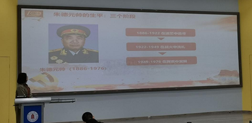 华西药学院、文学与新闻学院、数学学院、化学工程学院“党的十九大精神”学生宣讲团围绕“忆党史,学榜样”,以朱德元帅的生平经历为主线,通过讲述朱德元帅的光辉事迹,回忆了中国共产党从星星之火到燎原之势的波澜壮阔、激动人心的发展历程,坚定了同学们对中华民族伟大复兴的理想信念。