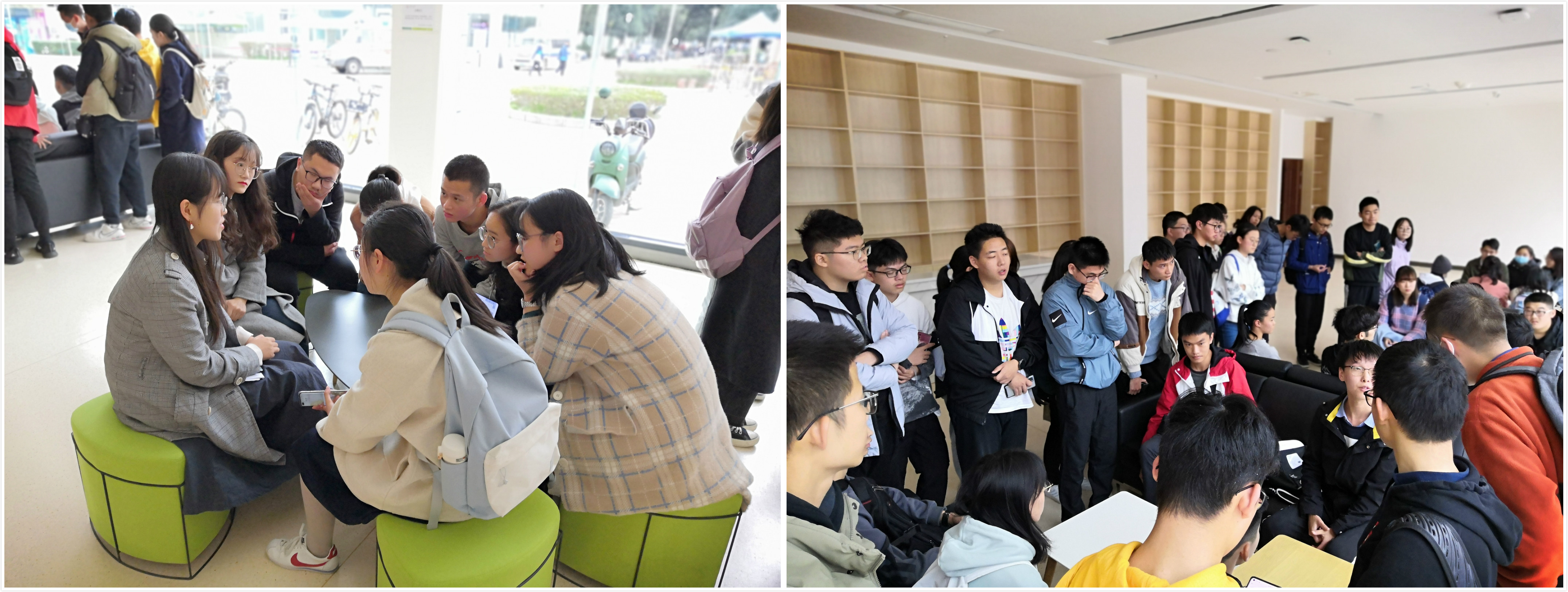 辅导活动下半段为分专业的小组答疑环节。同学们纷纷来到意向专业朋辈导师答疑小组,现场面对面询问转专业详情和心仪专业情况,就自己的问题听取学长学姐的针对性建议。答疑现场,同学们参与热情高涨,不断提出疑问,小导师们均一一耐心分析解答。大家围桌而坐,没有距离,没有陌生,积极询问,认真作答,交流在热烈友好的氛围中持续良久。