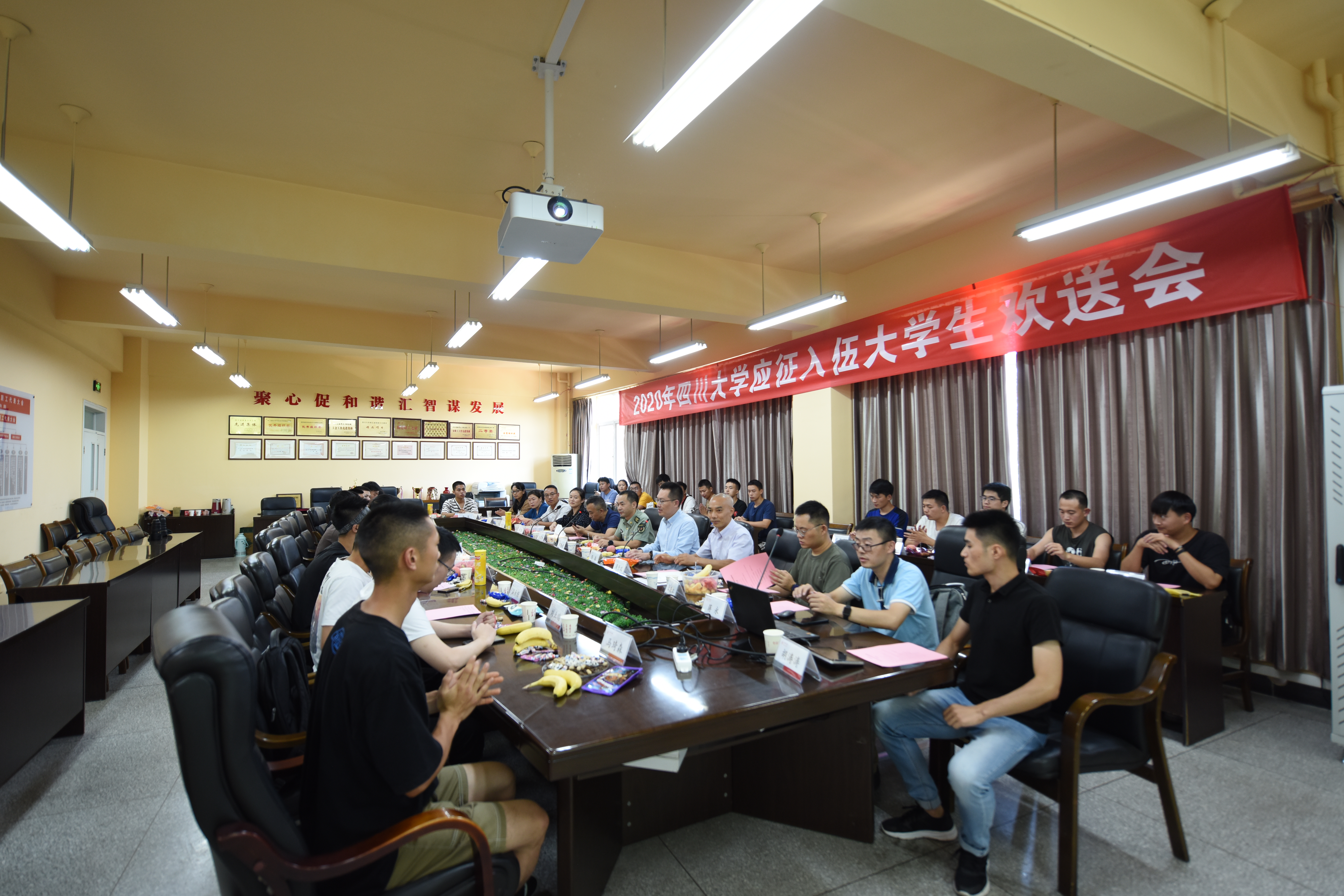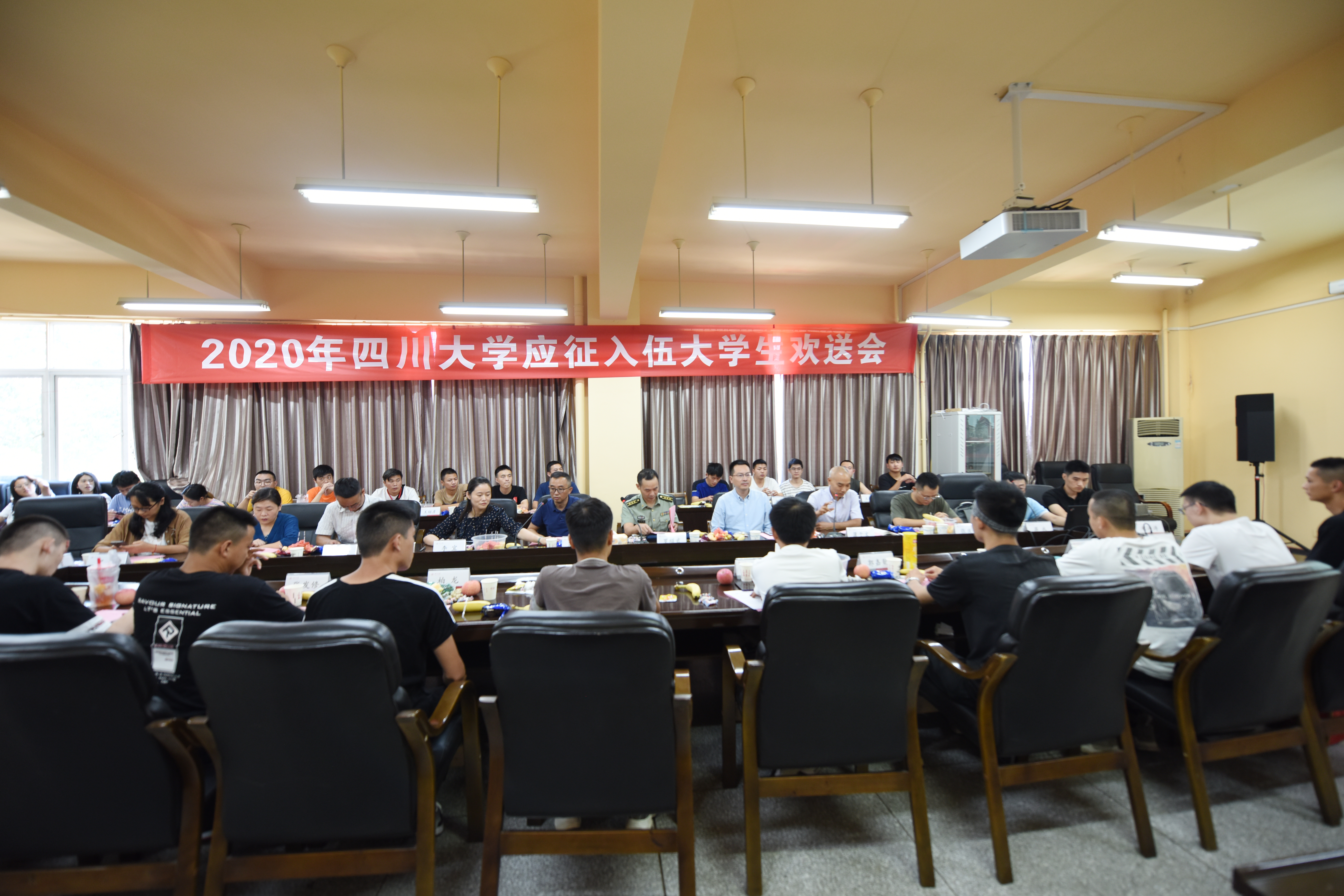 2020年9月2日下午3点,yl7703永利集团2020年应征入伍大学生欢送会在望江校区文华活动中心410会议室举行,武侯区人武部部长罗顺武、yl7703永利集团学工部部长陈森、就业中心主任潘霜柏、学工部副部长蒲于文、学院征兵联络员代表姜丹蓉老师、辅导员代表纪智宏老师及学工部军事科相关老师、我校2020年应征入伍政考合格学生、退役复学学生代表、校国防协会代表参加了欢送座谈会,会议由蒲于文副部长主持。