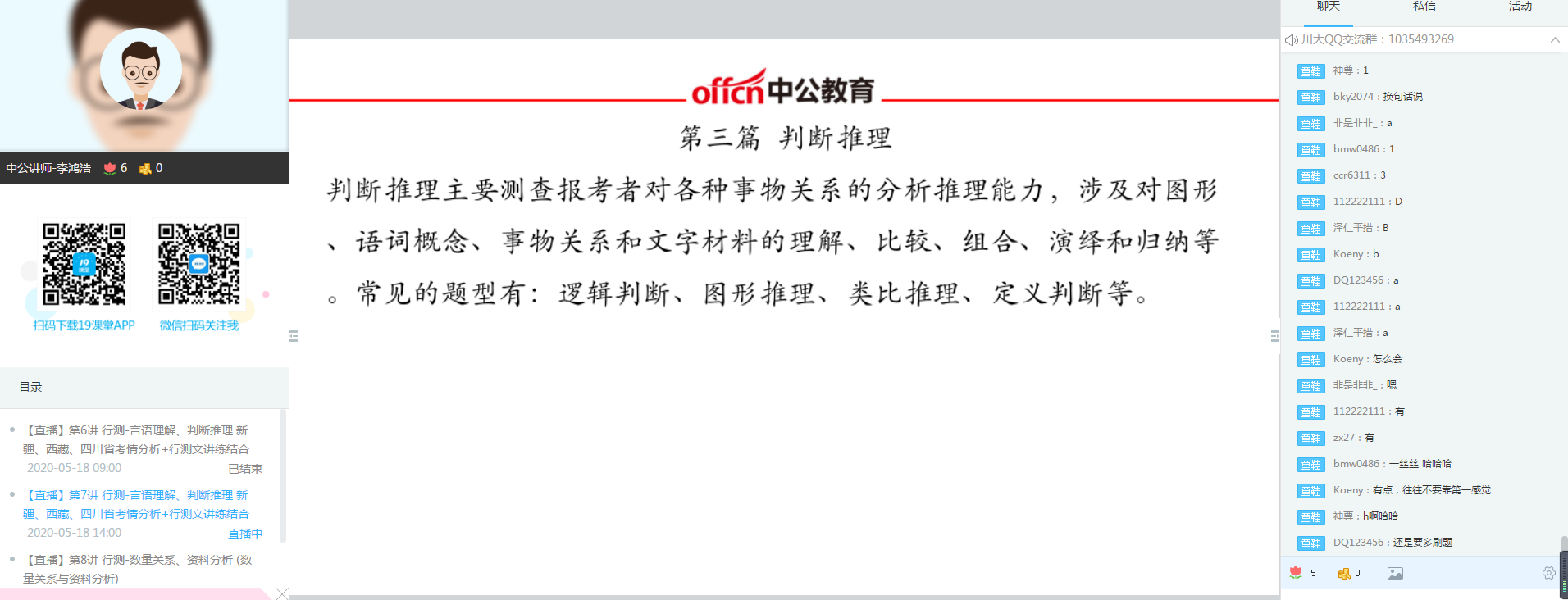 5月18日-19日,针对新疆、西藏和四川省进行考情分析,并对行政能力测试通过讲练结合的方式进行讲解。5月20-21日,主要分析了申论的题型和解题方法,并分别对归纳概括、提出对策以及综合分析、贯彻执行两个专题进行了详细讲解。