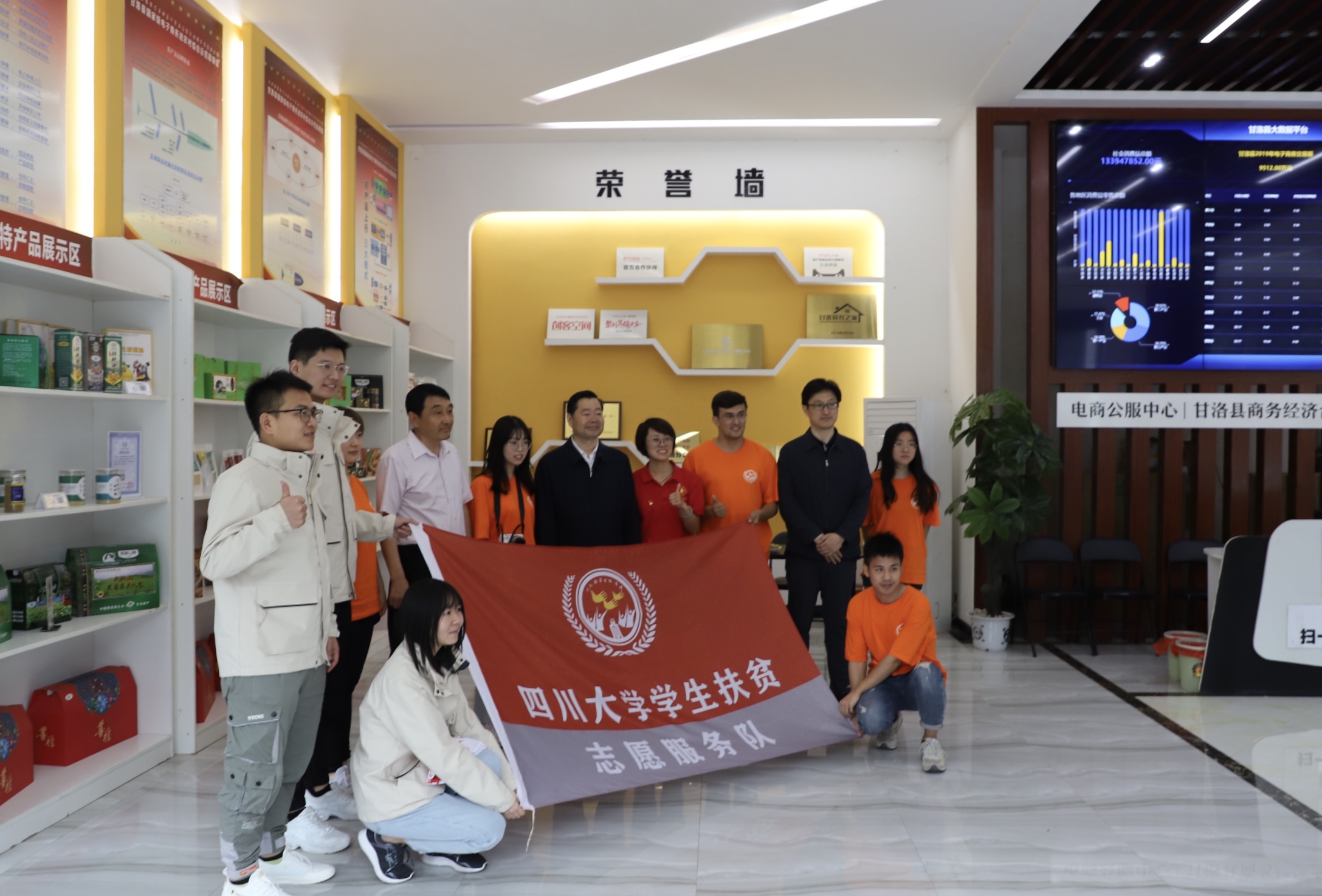 为做好yl7703永利集团“5.20”采购节的宣传,志愿者们来到甘洛县电子商务公共服务中心,对农产品进行宣传拍摄。在拍摄过程中,同学们正好遇到国务院扶贫办副主任洪天云视察甘洛县扶贫工作,洪天云对yl7703永利集团学生扶贫志愿服务队为扶贫工作做出的努力表示了肯定,鼓励同学们再接再厉,并预祝yl7703永利集团“5.20”采购节圆满开展。