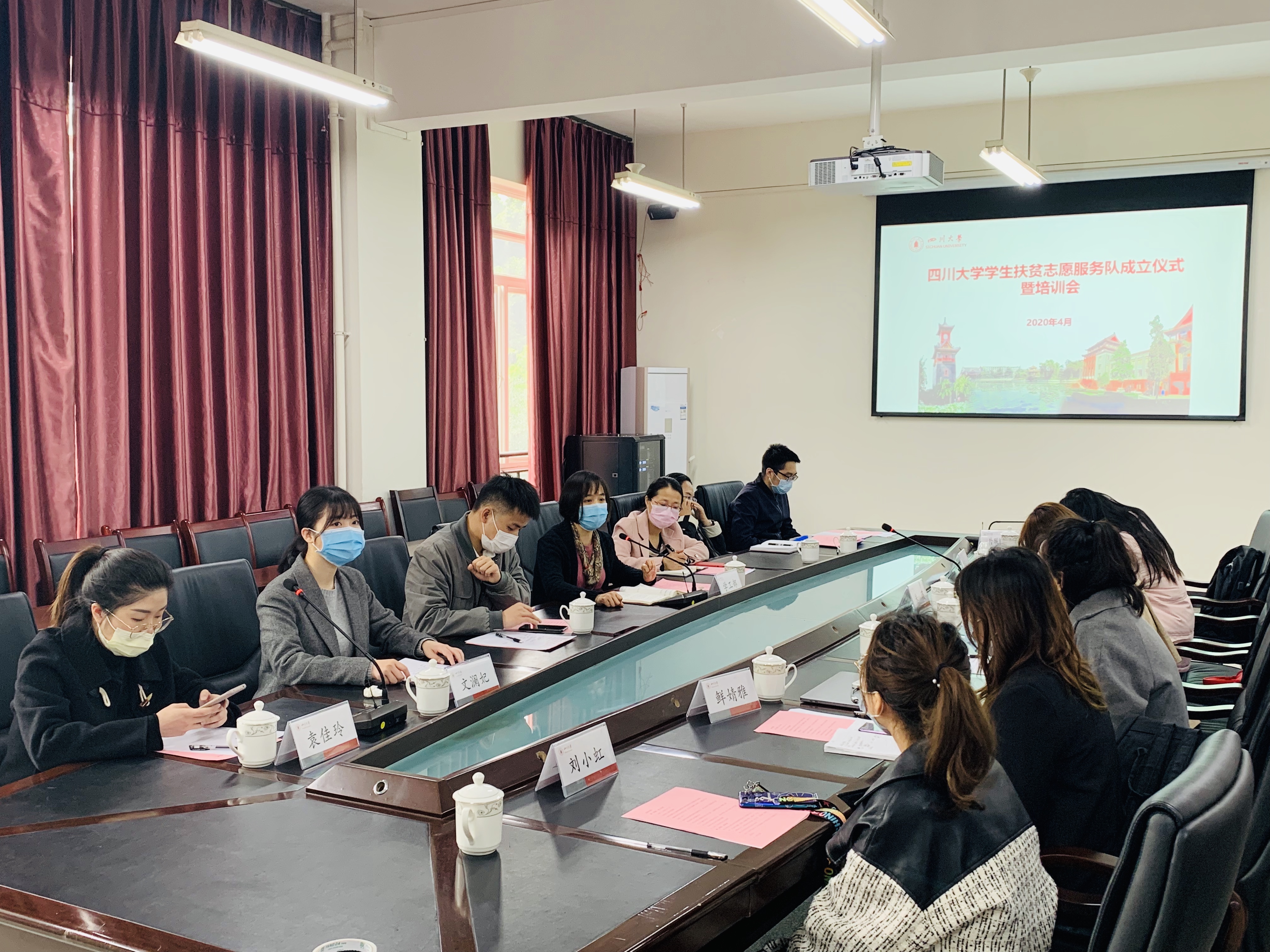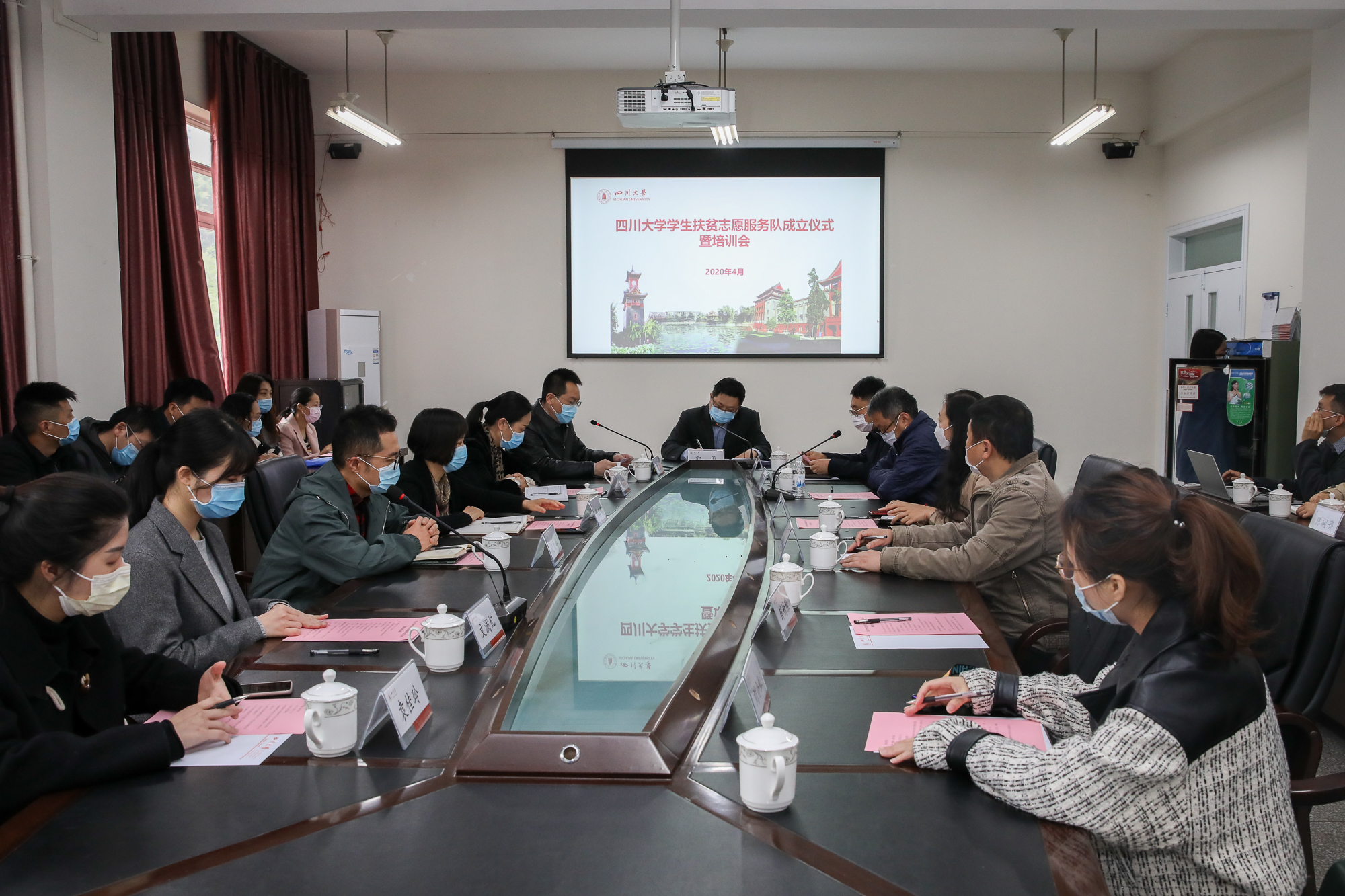 4月23日上午,我校学生扶贫志愿服务队成立仪式暨培训会在望江校区文华活动中心举行,校党委副书记郭勇,成都韩希科技有限公司(“e帮扶”平台运营公司)董事长朱汪龙,电子科技大学合作发展部校友会办公室副主任、教育系统“e帮扶”扶贫平台研发推广负责人朱薇,以及相关单位负责人参加了成立仪式,学生扶贫志愿服务队指导老师和队员们在现场或通过网络参加了活动。