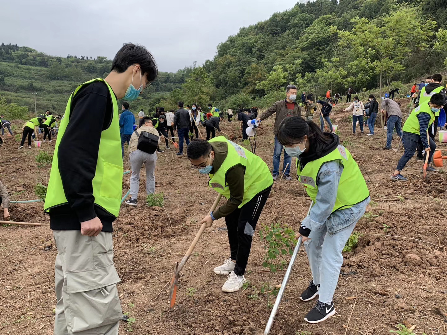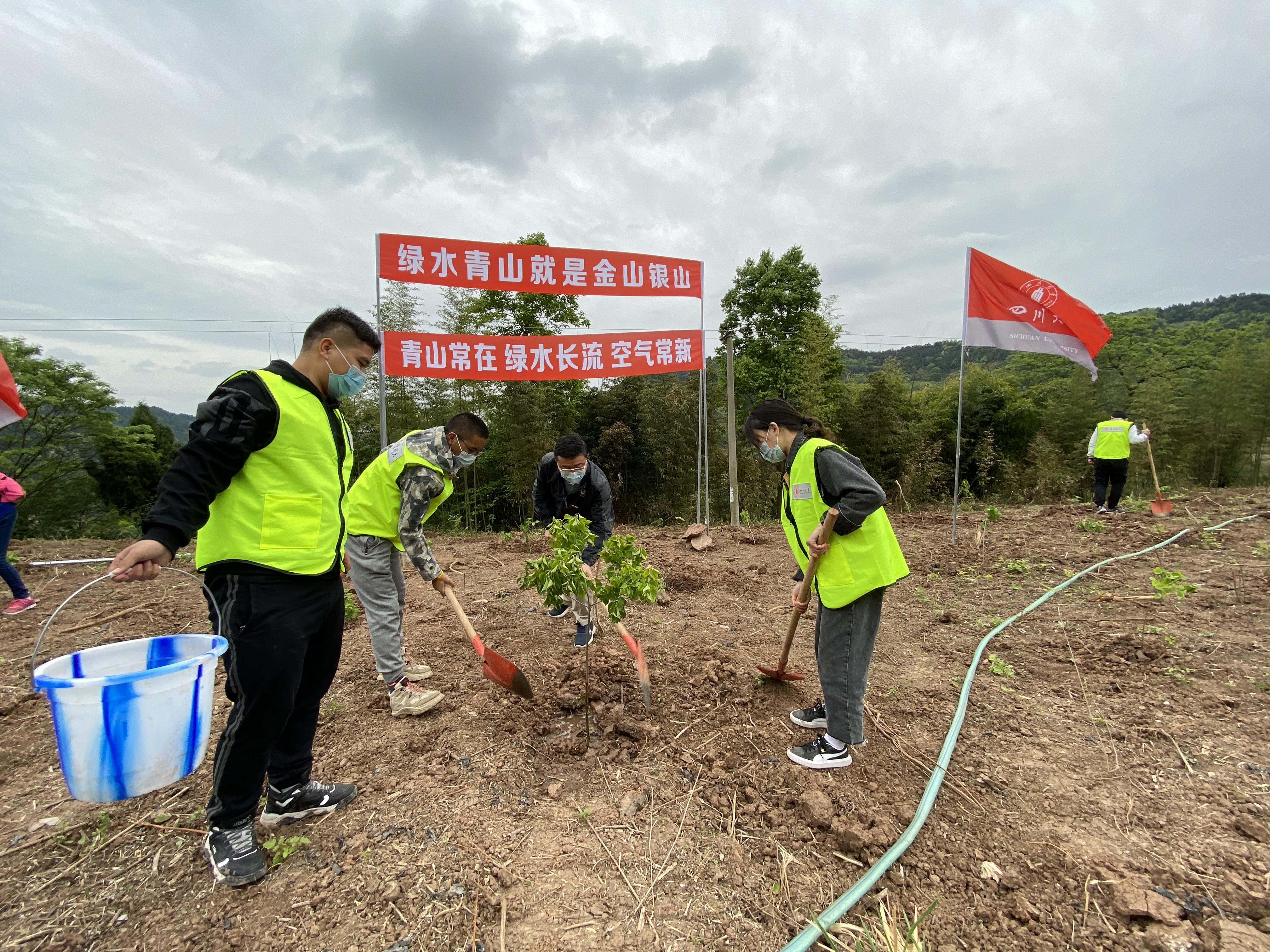 为提高川大学子的劳动实践能力,践行“绿水青山就是金山银山”的理念,按学校统一部署,4月21日上午,学工部组织40名疫情防控志愿服务队同学参加龙泉山城市森林公园开展“包山头”植树履责活动。