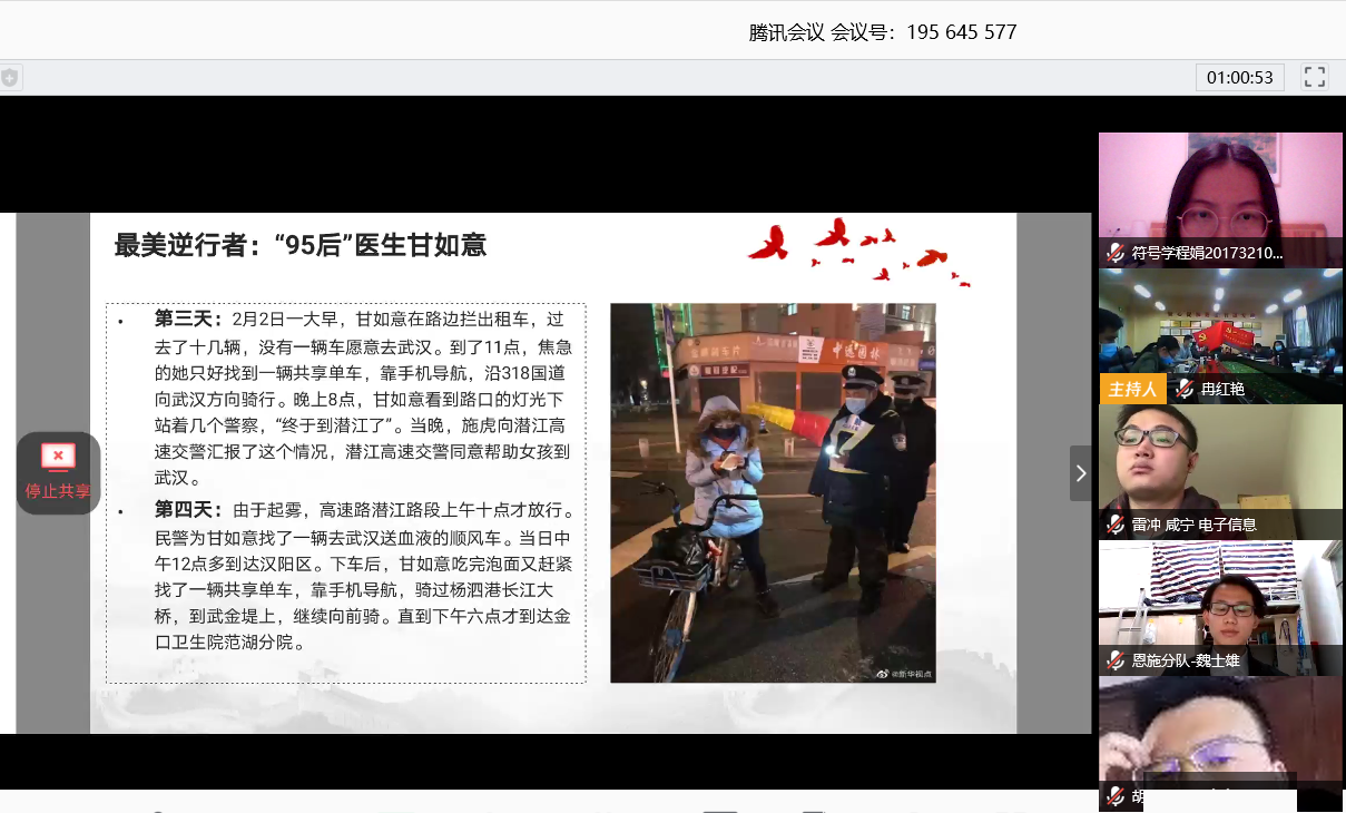 疫情发生后,我校在鄂学生党员充分发挥先锋模范作用,做表率,自发联系帮扶同城同学,形成湖北学生同城互助。为更好地发挥湖北学生党员的先锋模范作用,号召广大在鄂同学积极支持防控工作,我校成立了“在鄂学生党员志愿先锋队”,志愿先锋队由在武汉、恩施、荆州、黄冈等地的357名我校学生党员组成。