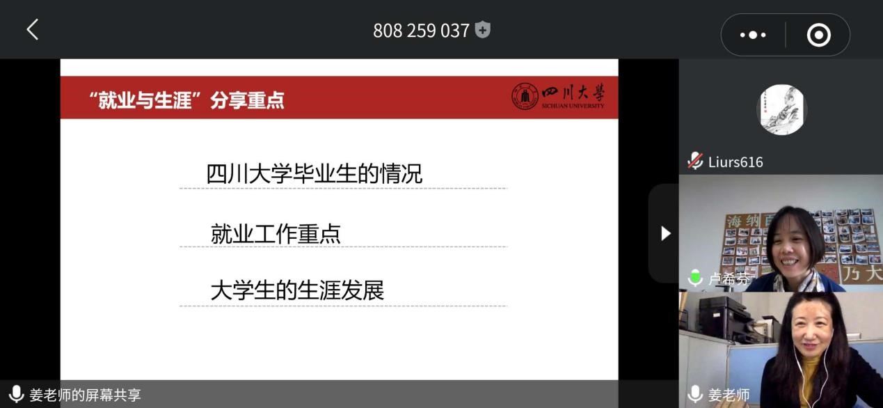 通过这次讲座使教导员学习和了解了川大毕业生就业情况,就业工作重点,大学生就业生涯规划的意义,对教导员进一步重点做好服务低年级学生工作给予了很大的帮助,此次线上专题讲座圆满结束。