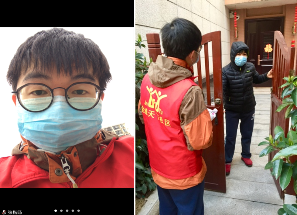 张楷旸家住武汉,是化学工程学院本科三年级学生。他的父亲是武汉市汉南区安康医院医生,确诊新冠肺炎,治愈出院后回到一线继续工作。张楷旸本人目前也是“社区专项志愿者”中的一员,负责为业主领取、分拣和派送生活物资。我们调研连线他时,他正在执行志愿服务。问及情况时,他谈到:“我和家人现在身体健康,国家和学校给与了很多帮助,老师们也特别关心我,经常打电话询问我的情况,让我和我的家人备受感动和鼓舞。”