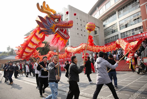 金猪辞旧岁,瑞鼠迎新春。1月20日下午,我校望江文华活动中心张灯结彩,喜气洋洋,以“东风入川来 庚子展宏图”为主题的寒假留校学生新春游园联欢活动在这里顺利举行。学校相关部处负责人以及部分教导员与近400名留校学生欢聚一堂,共迎农历庚子新年。
