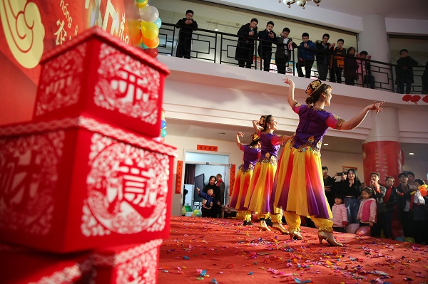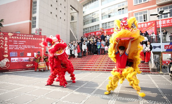 据悉,我校寒假留校学生新春游园联欢活动已连续举办了五年,今年是第六年。除新年游园联欢外,每年寒假,学校还为留校学生发放生活补贴、准备一分钱年夜饭、安排师生同看春晚共度除夕夜等,让留校学子感受到新年的氛围和家的温暖。