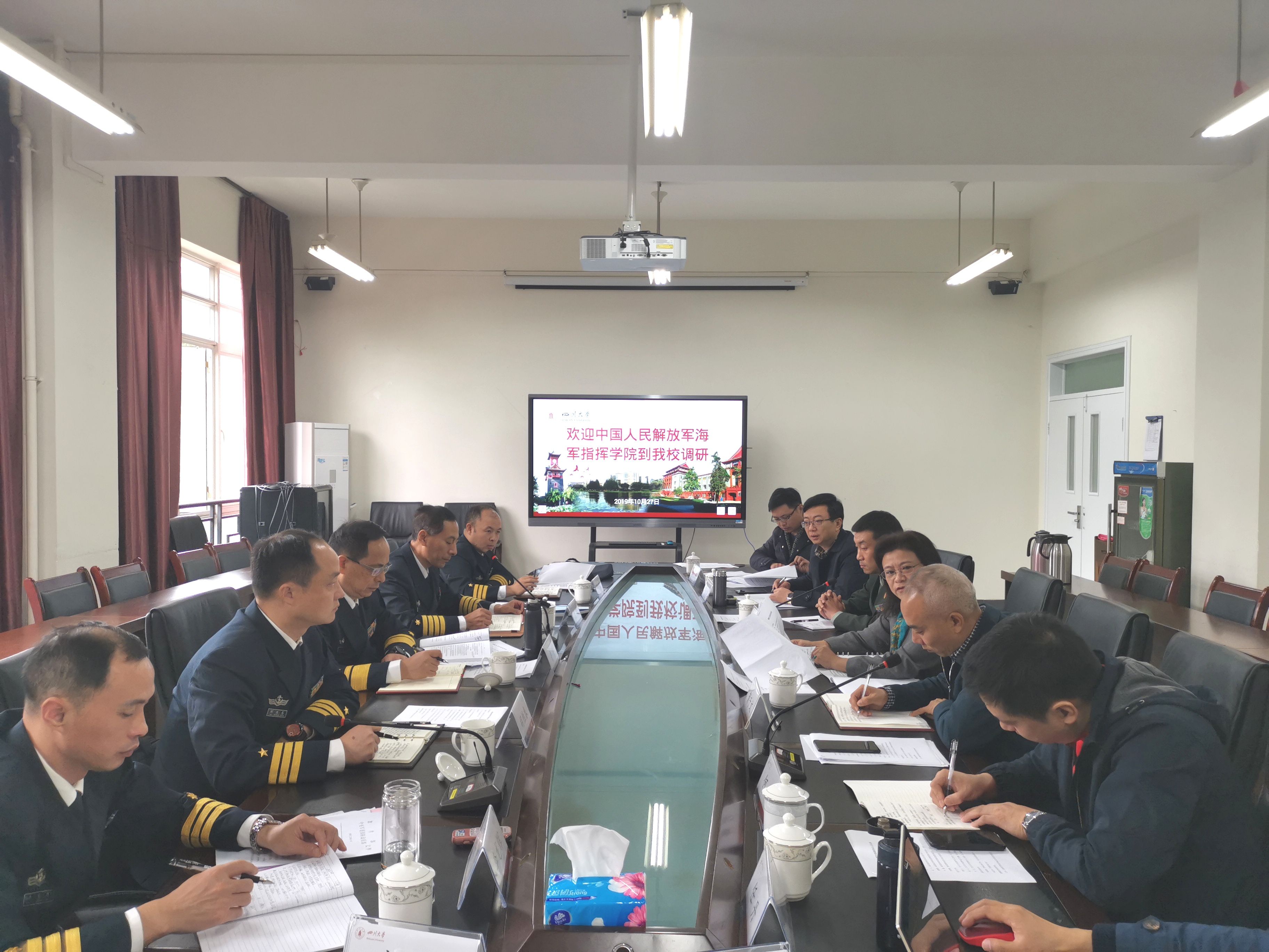 2019年10月27日上午,在四川省教育厅体卫处协调安排下,第十三届全国政协委员鲁明少将率领海军指挥学院一行5人调研组来我校组织召开普通高校国防教育专题调研座谈会,四川省教育厅卫体处一级研究员赖英莉、四川省军区战备管理局张昊、西南石油大学武装部部长邓洪波,成都航空职业学院士官管理学院院长任丹等参加座谈。我校学工部武装部副部长蒲于文,军事科蒋永、李宜同志参加了调研座谈会。四川省教育厅卫体处赖英莉同志主持调研座谈会。