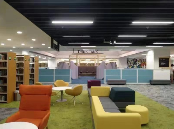 大川视界交流团进入港大后的第一站,是参观其历史最悠久的建筑——本部大楼,随后便去到港大主图书馆参观学习。此次,我校交流团队参观的是由新翼和旧翼共同组成的主图书馆,顶层的冯平山图书馆中收藏了多版本、全套的四库全书以及大量的中文图书,从顶层往下,参观团队依次参观了多个不同的独立自习区域、合作学习区域、会议区域、研讨区域以及最底层的视障学生学习区域和科技区域,图书馆内人性化的设计理念予以了交流团同学深刻的启发。
