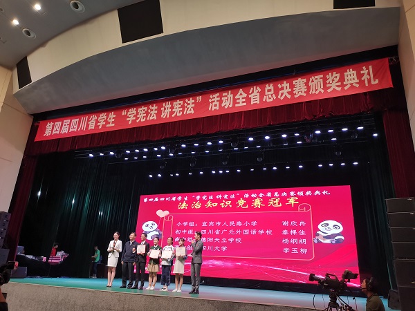 10月13日,由四川省委全面依法治省委员会办公室、省教育厅、省司法厅主办,四川师范大学、教育部青少年法治教育中心承办的第四届四川省学生“学宪法 讲宪法”活动决赛暨颁奖仪式在四川师范大学成龙校区龙湖剧场举行。经过激烈角逐,由我校党委学生工作部和法学院共同选培的、代表我校参赛的吴玉章学院2018级“卓越法律人才计划”涉外实验班本科生李玉柳发挥出色,力压群雄,荣获法治知识竞赛高校组冠军。