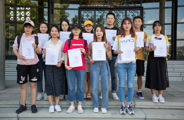 同学们与结业证书合影