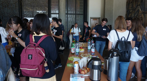 8月26日,Jones老师在正式上课前带领大家到当地的咖啡厅一起交流并相互认识,体验了国外大学独特的学习文化,并且品尝了香甜的咖啡饮品;在课堂上复习了上周所学,并在此基础上传授了法语学习的经验和技巧,为接下来的密集型法语课程做准备。利用午休时间,大家参加了弗里堡大学新生报道的茶话会,和来自世界各地的学生相互交流,体验国外大学的校园氛围。