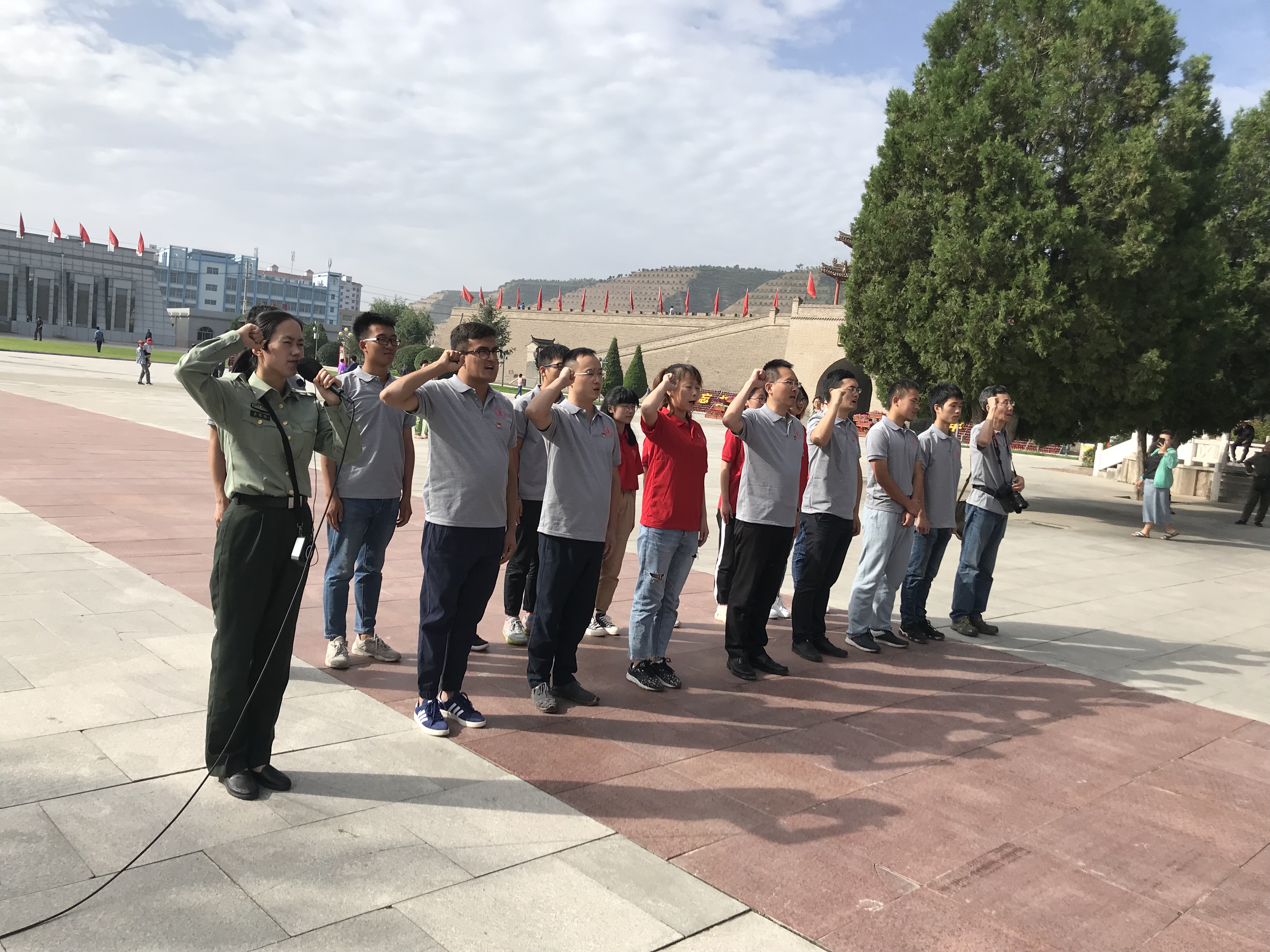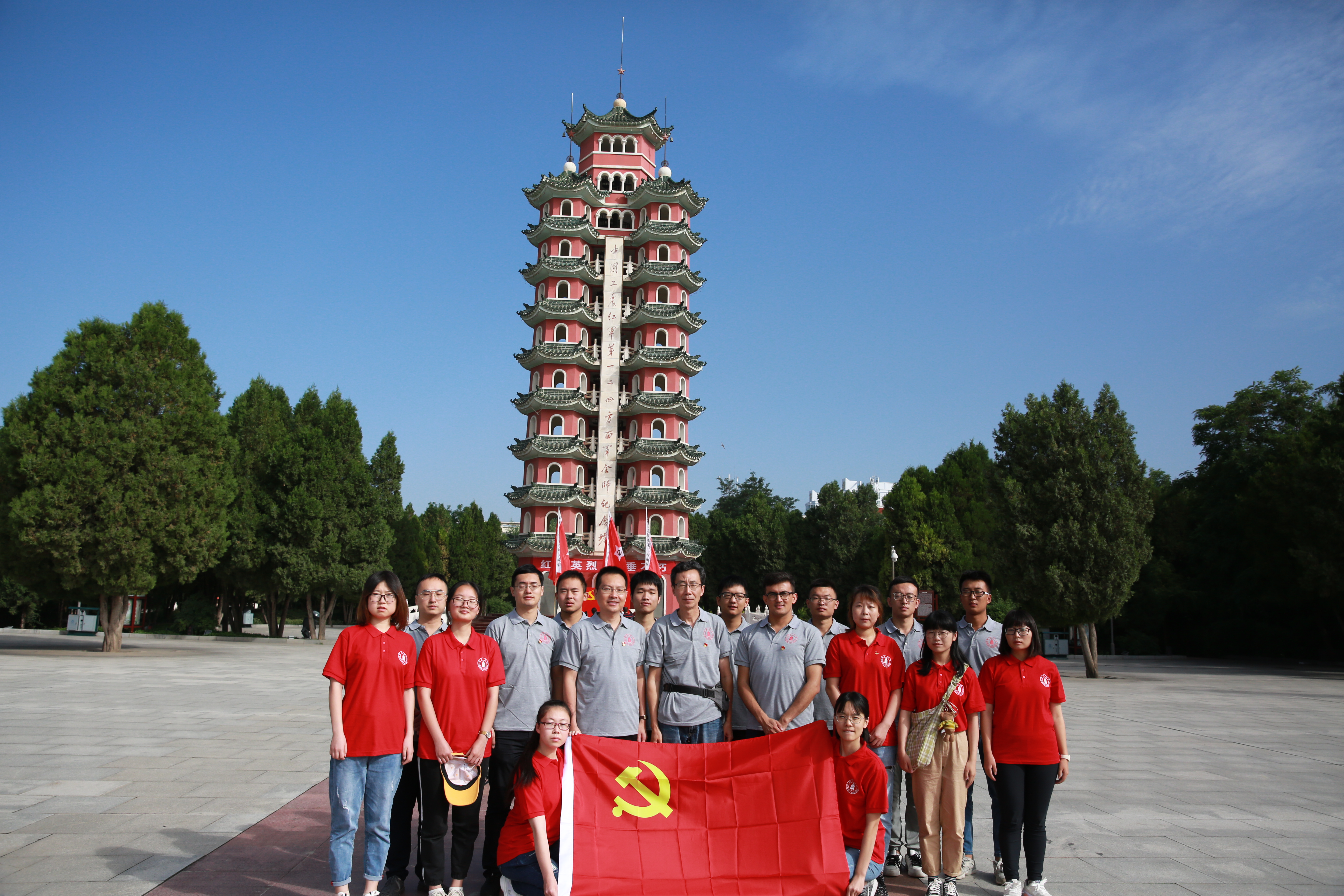 “我有长缨在手,何时缚住苍龙。”伴随着三大主力的胜利会师,红军终于走完了漫漫长征路。7月22日,学工部陈森部长、张舒、木拉提、教导员姜福汉、华西临床医学院王涵五位老师以及11名学生志愿者来到会宁会师旧址,触景生情,面向会师纪念塔,微爱团队集体奏唱国际歌,鞠躬缅怀,悼念先烈。陈森部长向纪念塔敬献花篮,并带领全体党员重温入党誓词。长征辉煌的历程虽然付出了难以想象的牺牲,但生命的极限也没有磨灭红军的信念。川大学子也将在民族复兴的大潮中传承红色基因,继往开来,肩负起时代赋予青年的伟大使命。