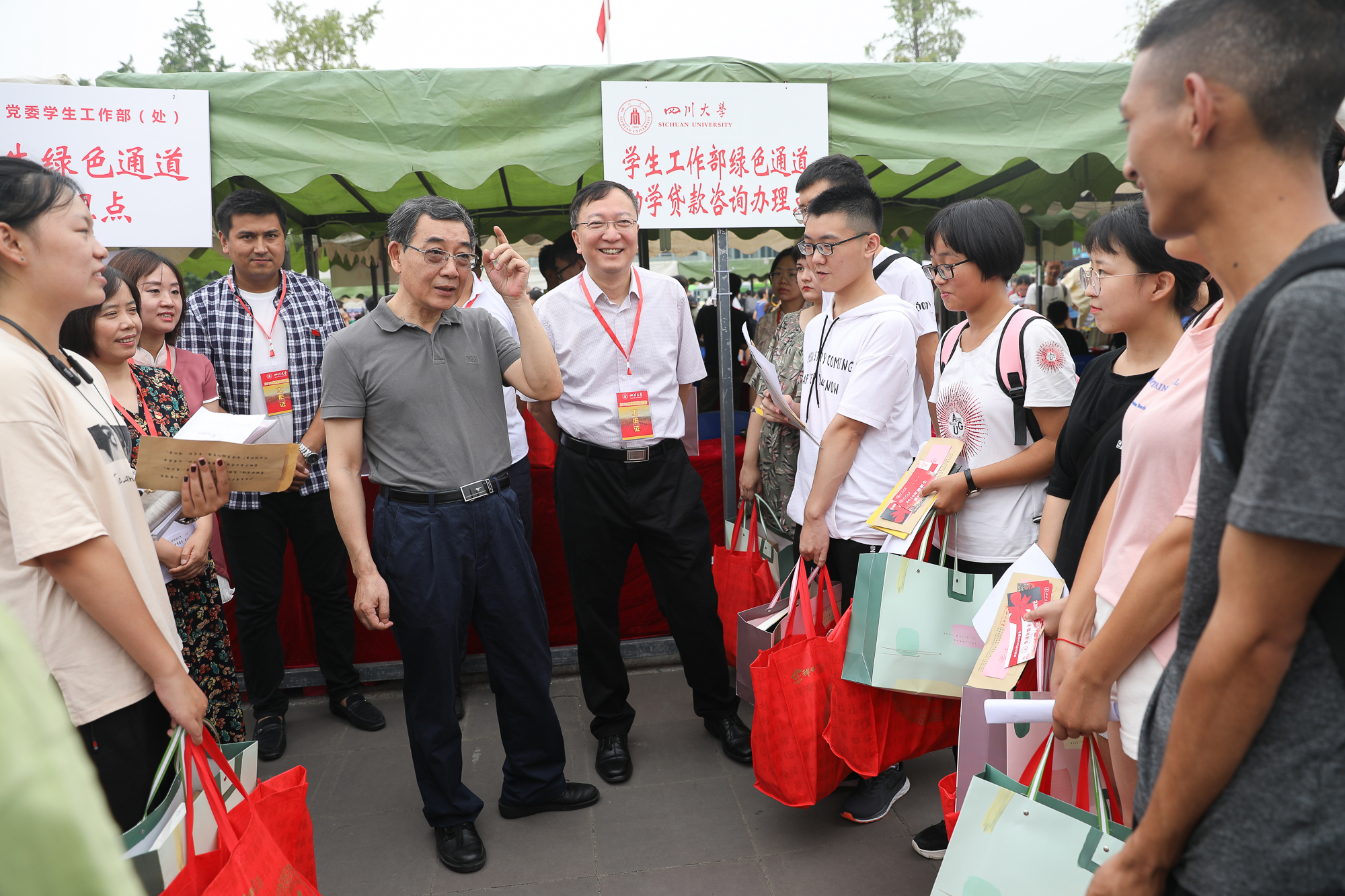 在江安校区西园学生宿舍,王建国书记、李言荣校长前往看望已经入住寝室的新生们,并与同学及家长围坐一起交流谈心,逐一了解同学们的家庭情况,在校期间的学习计划和未来成长的人生理想,勉励大家在川大成长为具有崇高理想信念、深厚人文底蕴、扎实专业知识、强烈创新意识、宽广国际视野的国家栋梁和社会精英。