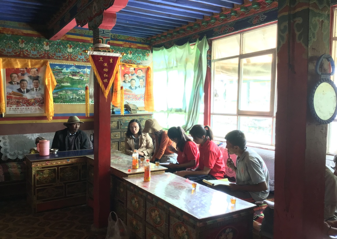 由于日喀则市高寒缺氧,地广人稀,县城之间路途遥远,调研团队几乎每天都是早上7点开始一天的行程,晚上才回到住地,还要进行总结讨论,分享个人心得,安排第二天走访计划,凌晨1点才能休息。即便是这样,有的时候一天也只能走访一个学生的家庭。受访学生家庭所在地平均海拔4300米,调研团队沿途翻越了几座海拔将近5000米的大山,绕过被雨水冲刷掉的小桥,车辆好几次都在陷在泥泞的道路里无法前行,卓玛老师带领志愿者同学坚持走完了能够到达的学生家庭,为他们送去了学校的温暖。走访途中,我们更是见证了扶贫成效,一幢幢藏式小楼拔地而起,一条条水泥铺成的马路直接通到了村里……这些变化让志愿者同学更加深刻地感受到了共产党为人民谋幸福的初心。