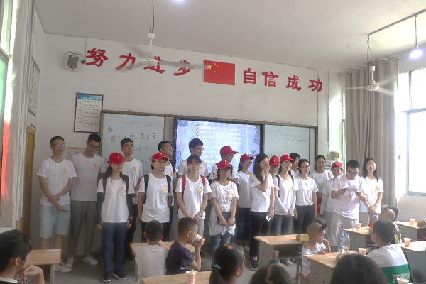 (我校暑期支教夏令营志愿者与岳池县苟角镇红朝门村高寺小学同学们互动)