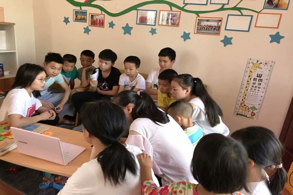 (“党的十九大精神”学生宣传团为石板坡村小朋友开展理想信念教育课堂)
