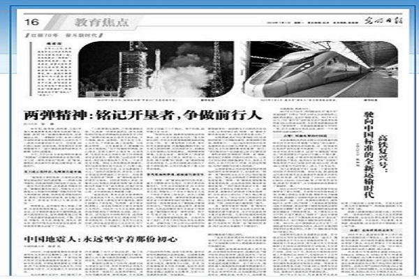 图/任静撰写的调研报告《两弹精神:铭记开垦者,争做前行人》刊登在《光明日报》7月1日出版的报纸16版
