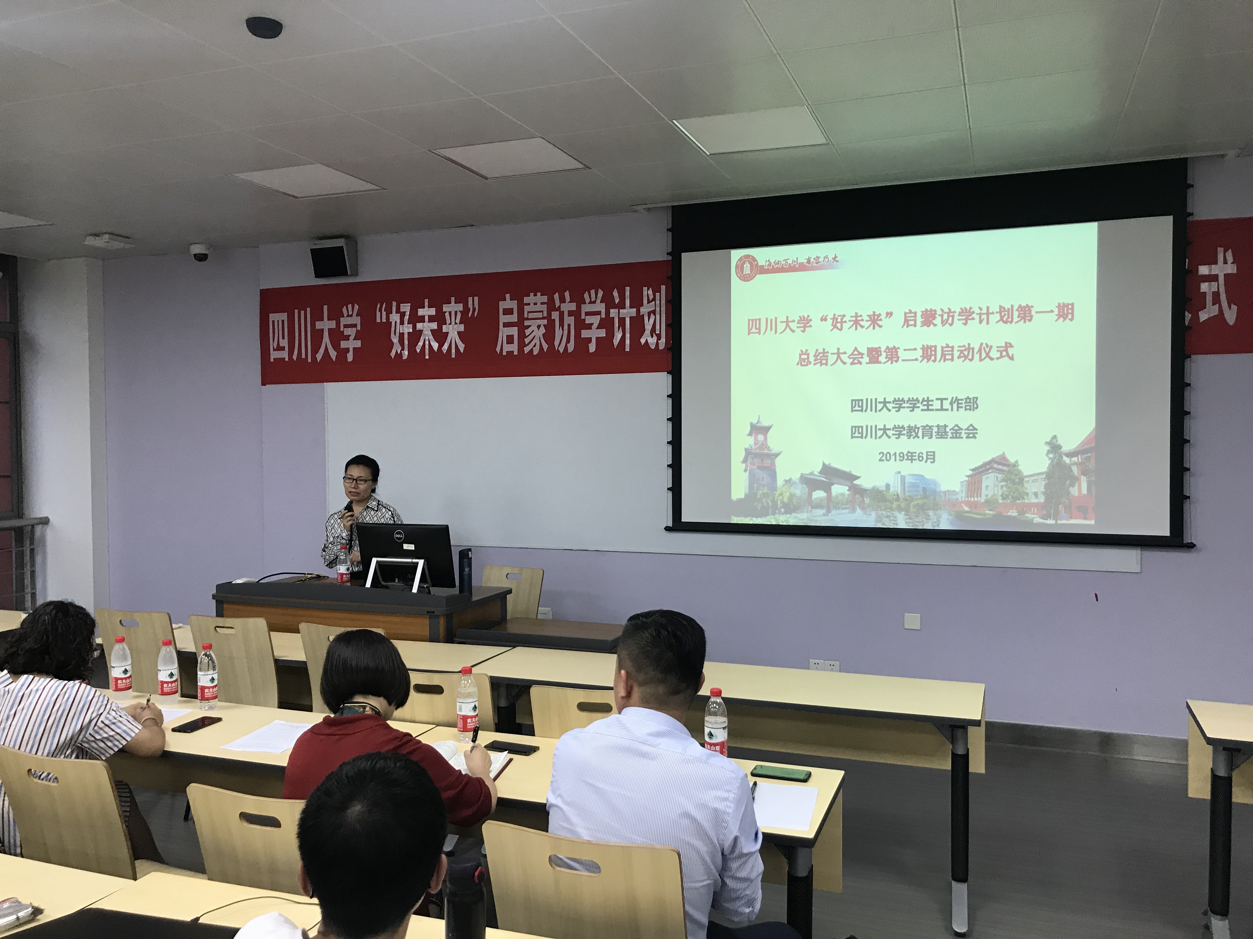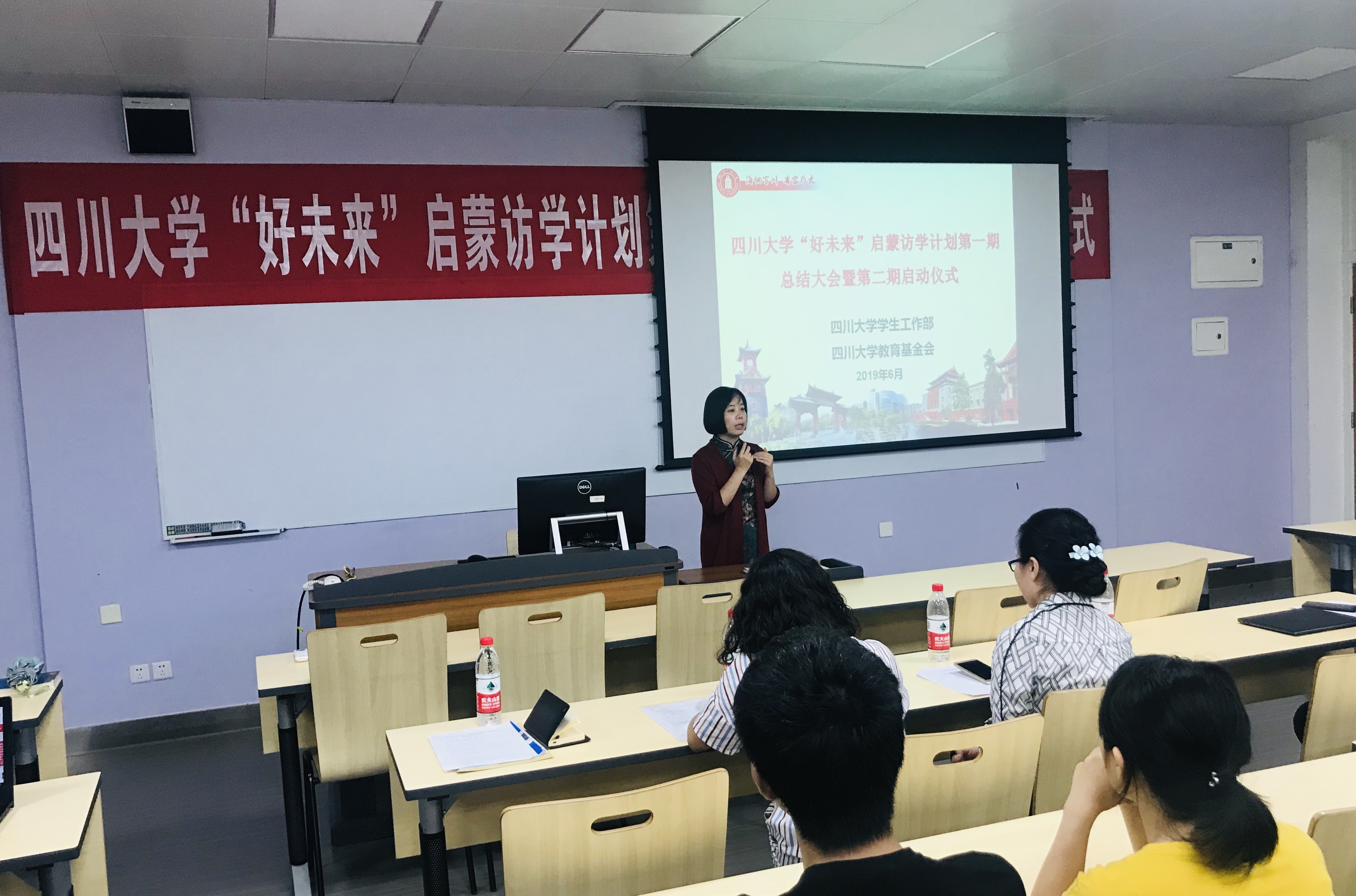 yl7703永利集团教育基金会副秘书长贾秀娥老师在发言中介绍了“好未来”启蒙访学计划的来历,并鼓励同学们心怀感恩、砥砺前行。为开阔庭经济困难学生的视野,助力家的发展,2018年张邦鑫校友决定每年捐资100万元用于学生的短期访学,项目初定为十年期。贾老师在讲述张邦鑫校友的奋斗经历中,叮嘱同学们不管在何种情况下都要时刻牢记自己作为川大人的身份,带着感恩砥砺前行。她还代表学校对外联络办公室告诉同学们,无论将来同学们走到哪儿、遇到什么困难,都要记得母校一直是大家温暖的家。
