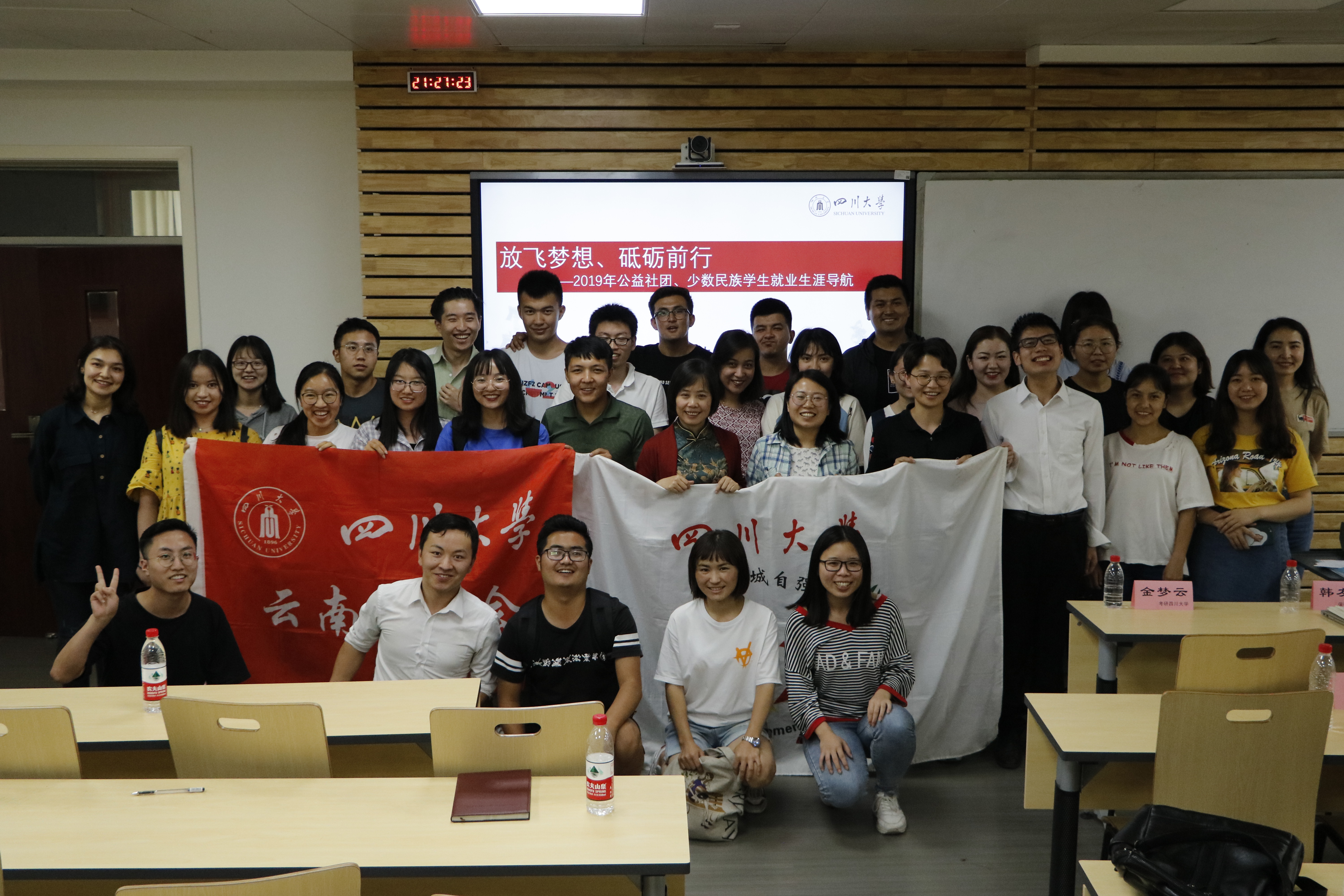 为解答同学们的职业发展困惑,学工部和招生就业处以“放飞梦想 砥砺前行”为主题,于2019年5月22日在望江校区基教A408举办职业生涯规划分享交流会。本次座谈会邀请学工部副部长卢希芬、成功创业者优秀校友李关党、以及就业、考研或保研成功的12名毕业生代表、资助中心老师、内派老师参加了此次分享会。