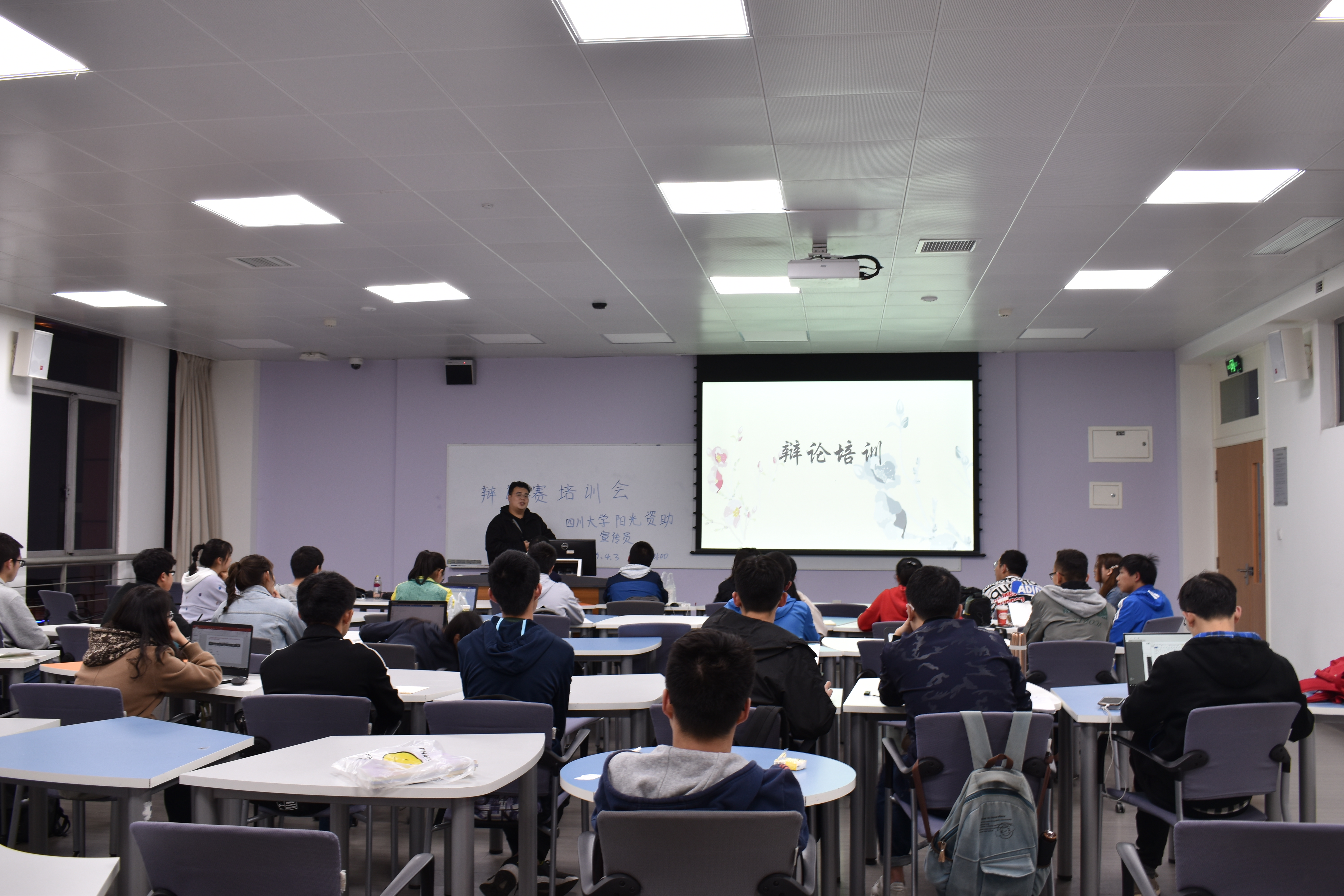 2019年4月20日的江安,夏意已渐浓。天虽阴晴,但我心有无限阳光。半期将近,为缓解同学们学习的压力,增进各公益社团间的交流与合作,为同学们搭建一个展现自我、提升软实力的平台,阳光资助宣传员组织了以“宏词论道,以辩会友”为主题的学生公益联谊辩论赛。教导员兰礼杰老师、廖晓玉老师、张晓舟老师,学工部帕哈尔定老师、兼职辅导员迪力努尔老师,院辩论队及各公益社团代表作为评委参加了本次趣味辩论赛。晚上七点,来自同心社、思源社、阳光资助宣传员的成员及“立信·明远”结对计划的志愿者齐聚江安校区一教A316,开展了一场别开生面的趣味辩论。