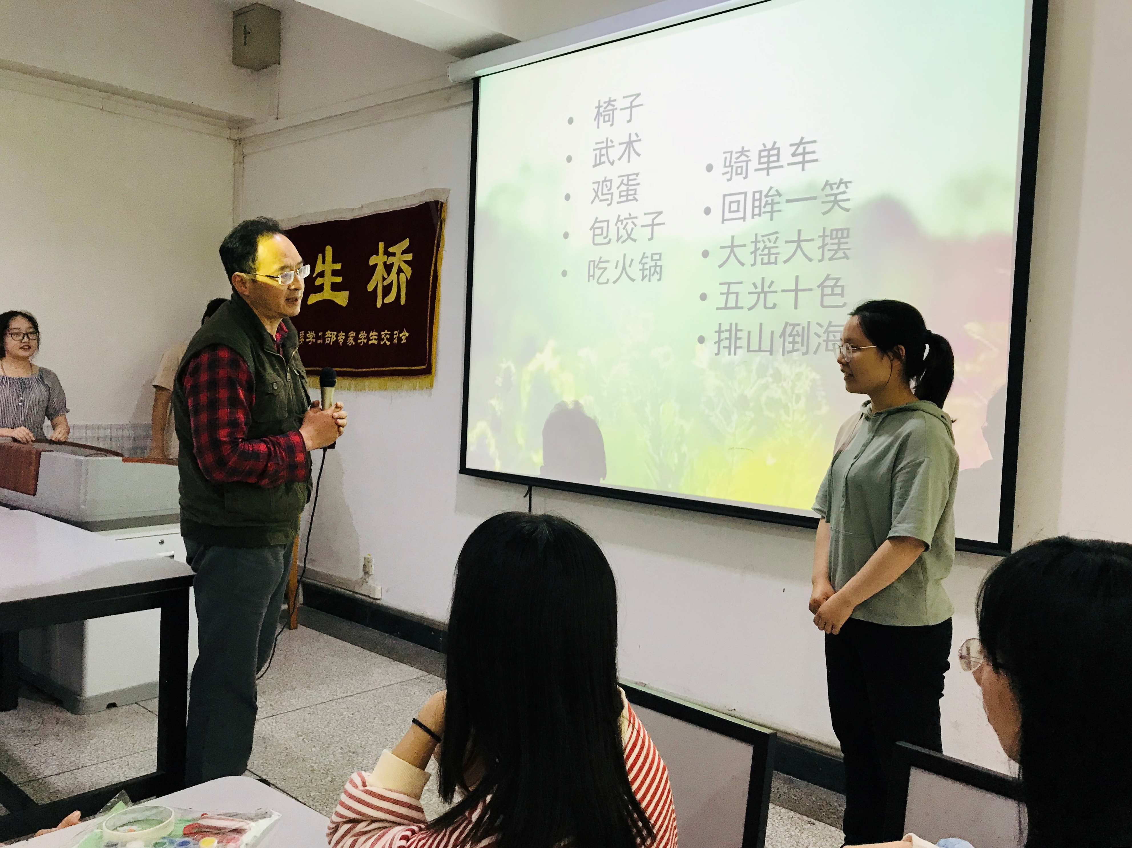仲春四月,惠风和畅,万物复苏,一片生机。在这充满希望的春天里,全校师生纷纷以自己的方式迎接建国七十周年。4月20日下午3点至5点,江安校区艺术学院B2-5和B2-7教室欢声笑语,掌声不断,教导员老师和师生桥社团的同学们欢聚一堂,举行"春天的故事"师生联谊会,两代人共同绘就心愿,放飞梦想,展望未来。学工部卢希芬副部长参加了活动。