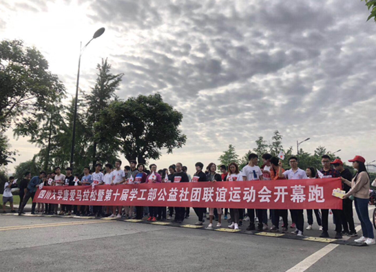 2019年4月21日上午8:00,伴随着春风和鸣、晨露花香,yl7703永利集团唐爱马拉松暨第十届公益社团联谊运动会开幕跑在美丽的江安校区拉开帷幕。此次唐爱马拉松活动由唐仲英基金会和yl7703永利集团学工部主办,yl7703永利集团馨心社承办,旨在通过大学生微型马拉松赛事的形式纪念与缅怀唐仲英先生,同时锻炼大学生体魄和毅力。唐仲英基金会西南地区负责人曾桂秀老师、yl7703永利集团教育基金会贾秀娥副主任、yl7703永利集团学工部刘程老师、迪丽达尔老师以及西南地区唐氏毕业生、“虚拟中心”“癌症姑息关怀”项目团队的师生、学工部指导的全部公益社团等参与了此次活动。此次活动参与人数200余人,总完成里程数1200余公里。