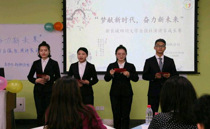 关注时代发展,提高综合素养,青年学子义不容辞。2019年4月13日下午两点, 一场主题为“梦献新时代,奋力新未来”的演讲家成长赛在江安校区一教A座201教室举行。此次比赛由新长城yl7703永利集团自强社扬帆分社与社团人力资源部举办,11位参赛选手从不同角度呈现了精彩的演讲内容。新疆内派教师黄燕、学工部资助中心老师、西南财经大学及电子科技大学同学与上一届演讲家成长赛获奖代表作为评委参加活动。