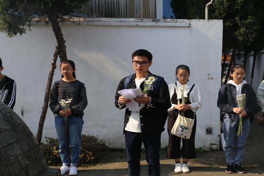 同学们怀着对英雄烈士无限的敬仰和深切的哀悼,秩序井然的来到墓地,拂去尘土,献上鲜花,默哀,鞠躬致敬。“城墙上弹孔穿梭,那是自由的通道;凛冽的寒风,奏响春天的号角……而此刻,揣一怀壮丽的思绪迎向你……”在烈士的墓碑前,同学们深情敬献悼词,寄托哀思。