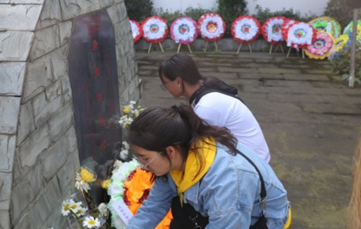 上午9:30,扫墓队伍抵达烈士陵园,经济学院张文宇同学向大家讲述了陵园里英雄的故事。十七名烈士,他们来自全国各地,他们全部是首批调往西南组建西南空军的干部及技术精英,他们为祖国繁荣昌盛而集聚,1951年8月23日,他们乘飞机由北京返回成都途中,至彭州九顶山时,因气候恶劣,飞机失事遇难……