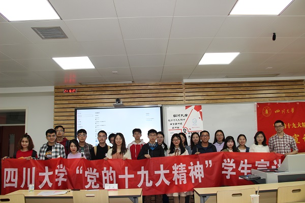 在学工部指导下, “党的十九大精神”学生宣讲团将继续依托学院分团挖掘特色宣讲活动,贯彻执行“1+N”主题宣讲活动,并联系各院党支部、团支部将“宣讲进支部”活动落到实处,不断推动宣讲团工作扎实开展。